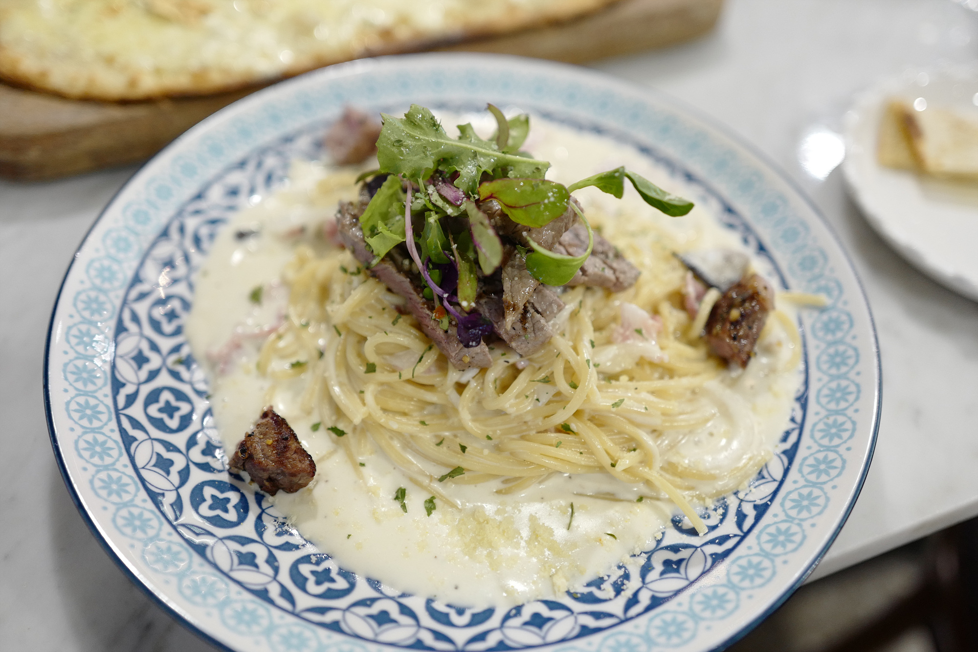 진한 크림소스와 그릴에서 바로 구워낸 채끝 등심이 들어간 크림파스타