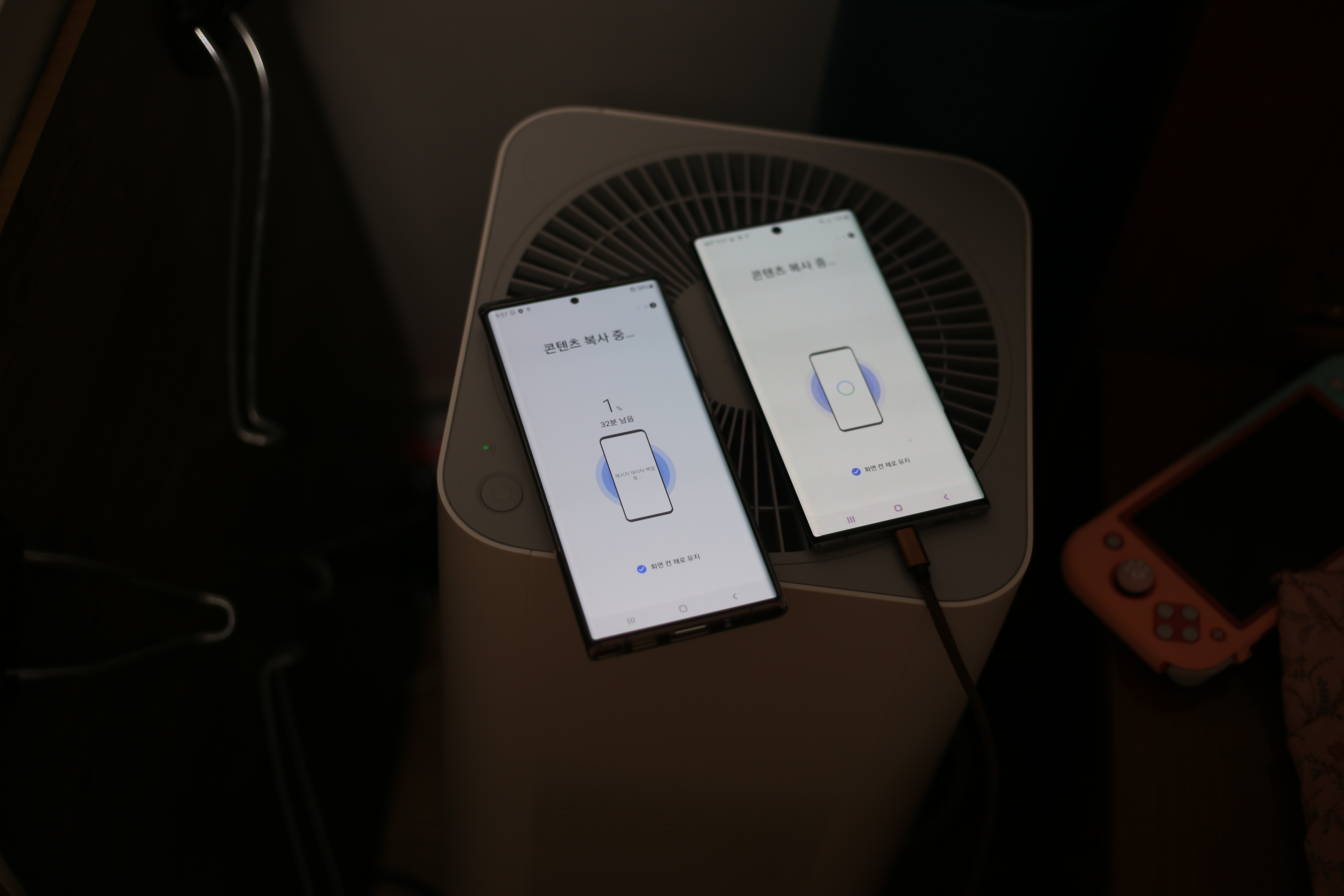 기존 노트10에서 노트20으로 모든 어플, 설정, 데이터들을 옮기고 있는 모습입니다.