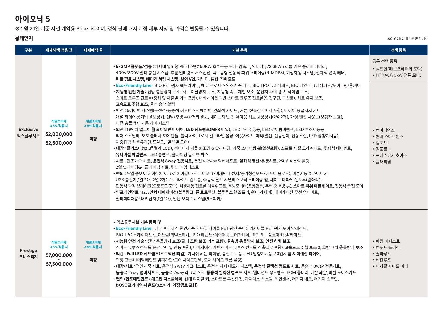 현대 전기차 아이오닉 5 가격표 옵션 실내, 실외 사진 정보