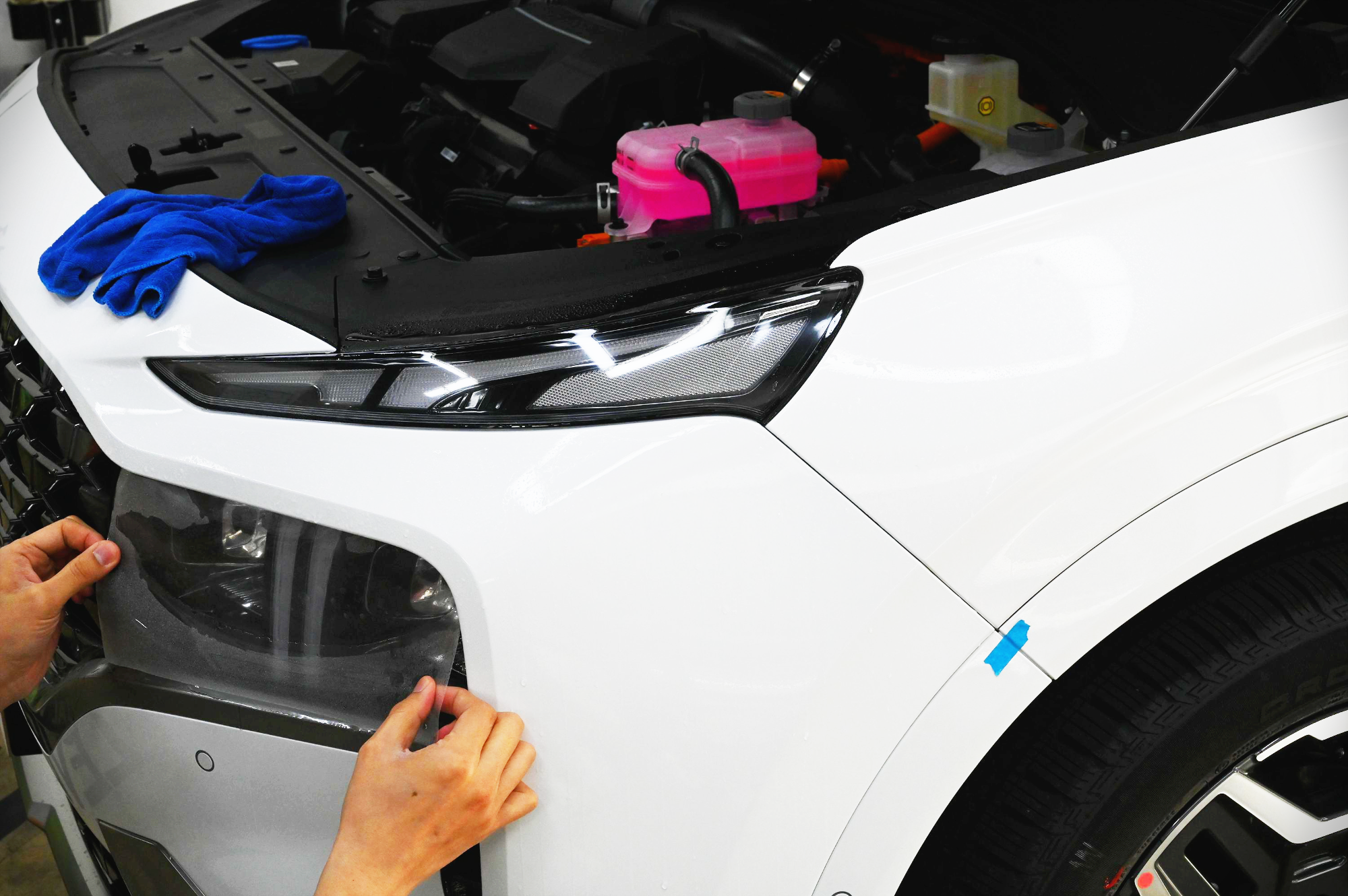 상,하단으로 분리되어있는 헤드램프에 PPF가 시공된 모습