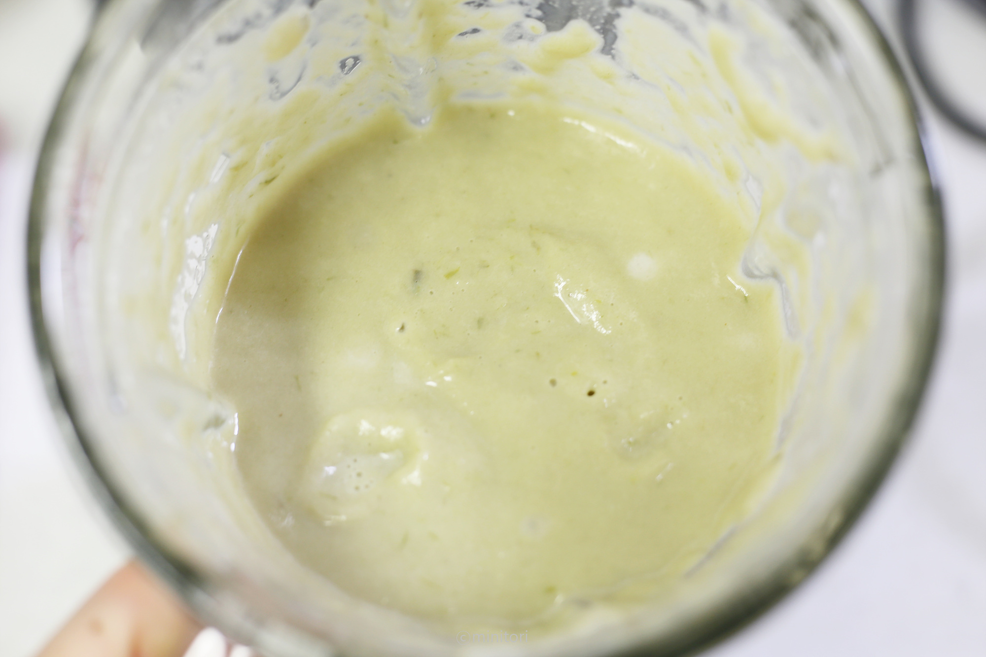 4. 믹서에 냄비에 끓인 내용물과 찐고구마 우유를 넣고 곱게 갈아준다.