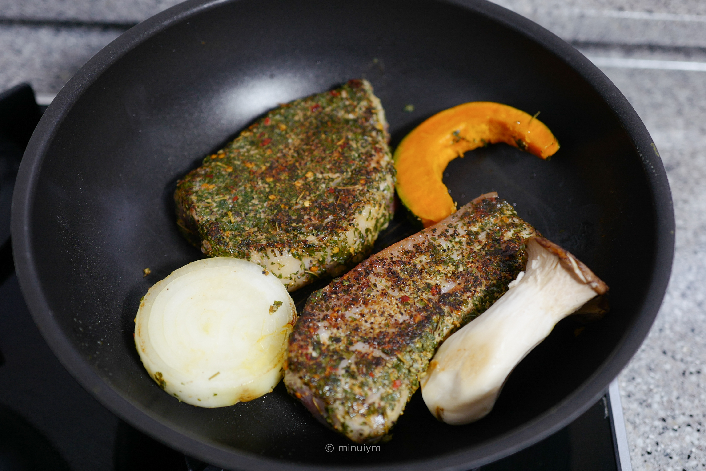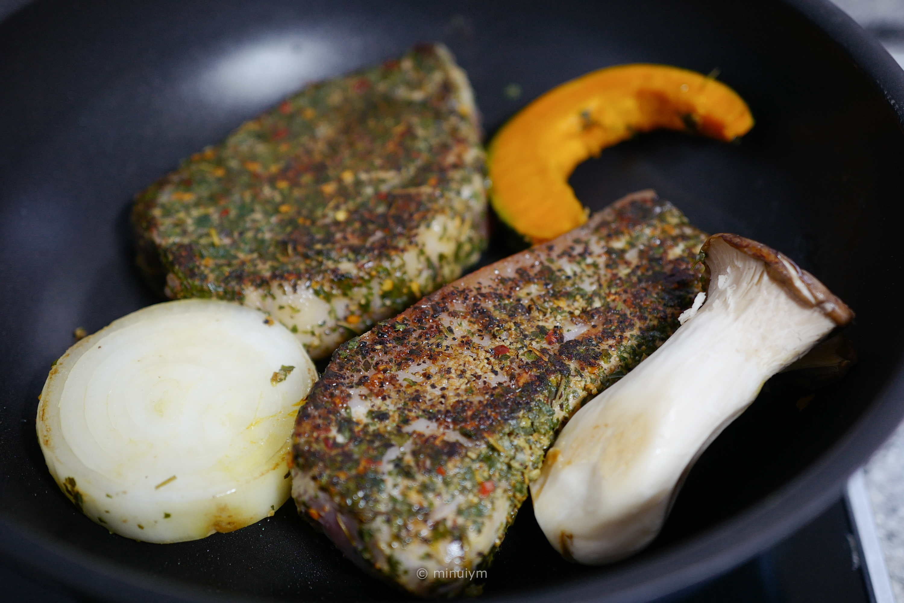 추천 레시피 중에는 에어프라이어를 이용하는 방법도 있었지만, 이번에도 팬에 구워보기로 했다.
