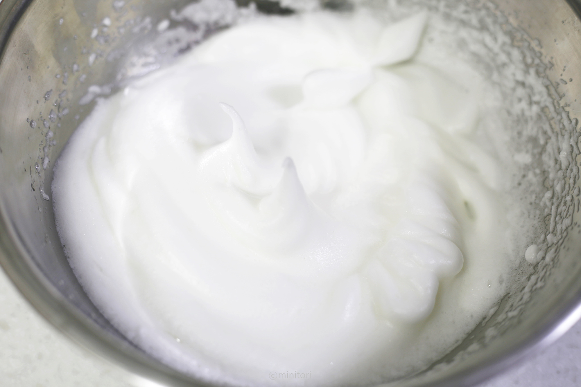 6. 흰자는 거품기로 단단한 머랭을 올린다.