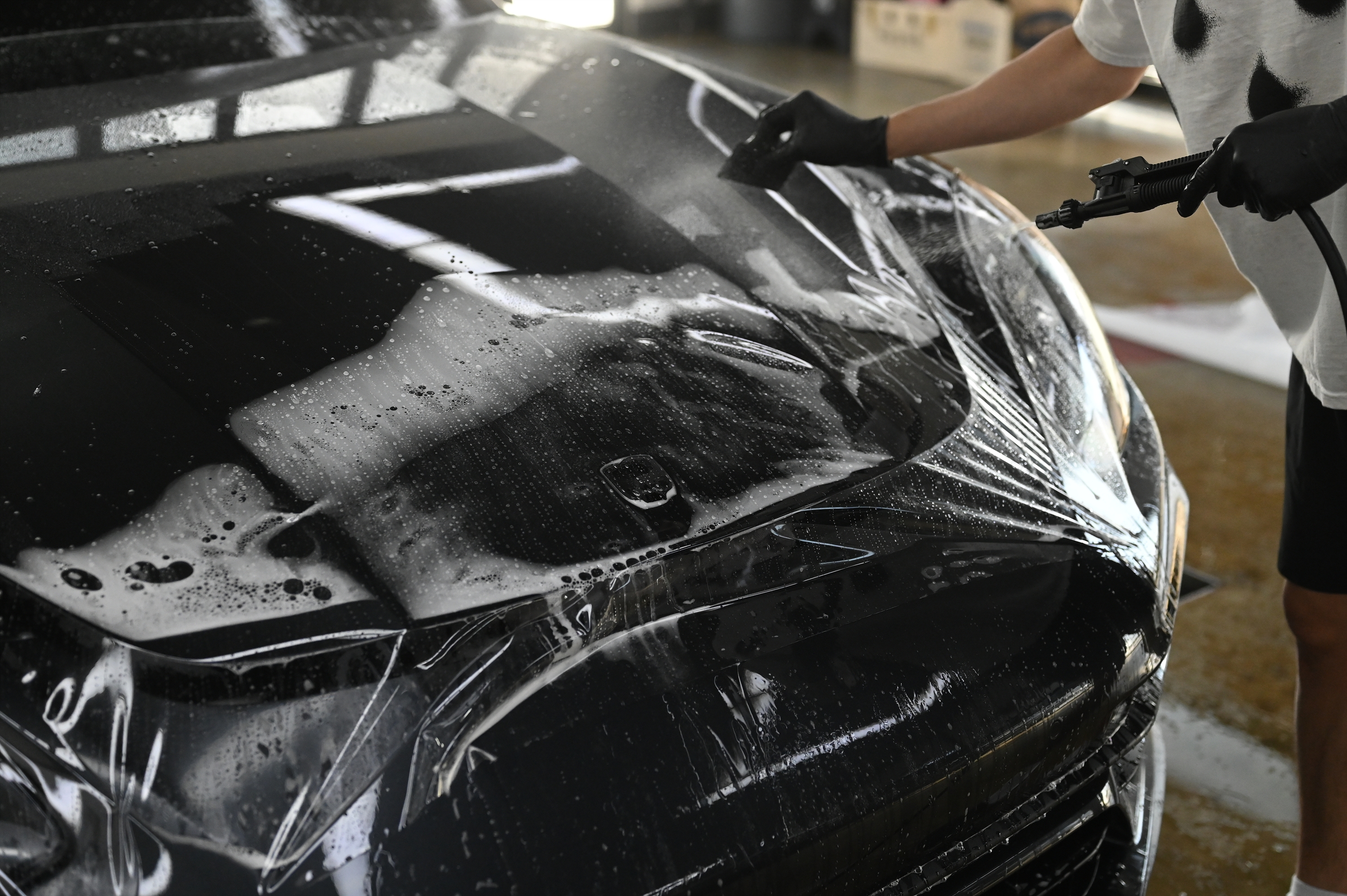아무리 신차더라도 전처리 작업은 굉장히 중요합니다. 신차도 도장면에 타르와 철분들이 내려앉은 경우가 많으며 무엇보다 수입차의 경우 더욱 심한 편입니다. 입항 후 대기하는 동안 내려앉은 타르, 철분 여기에 도장면 틈새에 고운 모래들이 잔뜩 들어가있는 경우도 쉽게 볼 수 있기 때문입니다. 정교한 PPF 작업 진행 전 최대한으로 디테일링을 진행한 후 본 작업에 들어가게 됩니다.