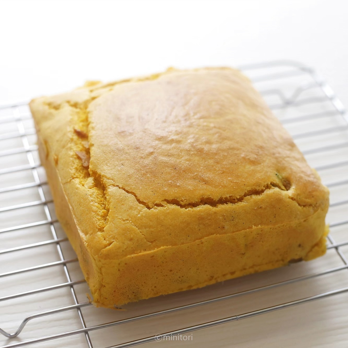 17. 틀에서 빼내어 유산지를 제거하고 식힘망 위에 올려 한 김 식힌 뒤 아기가 먹기 좋은 크기로 썰어 제공한다.