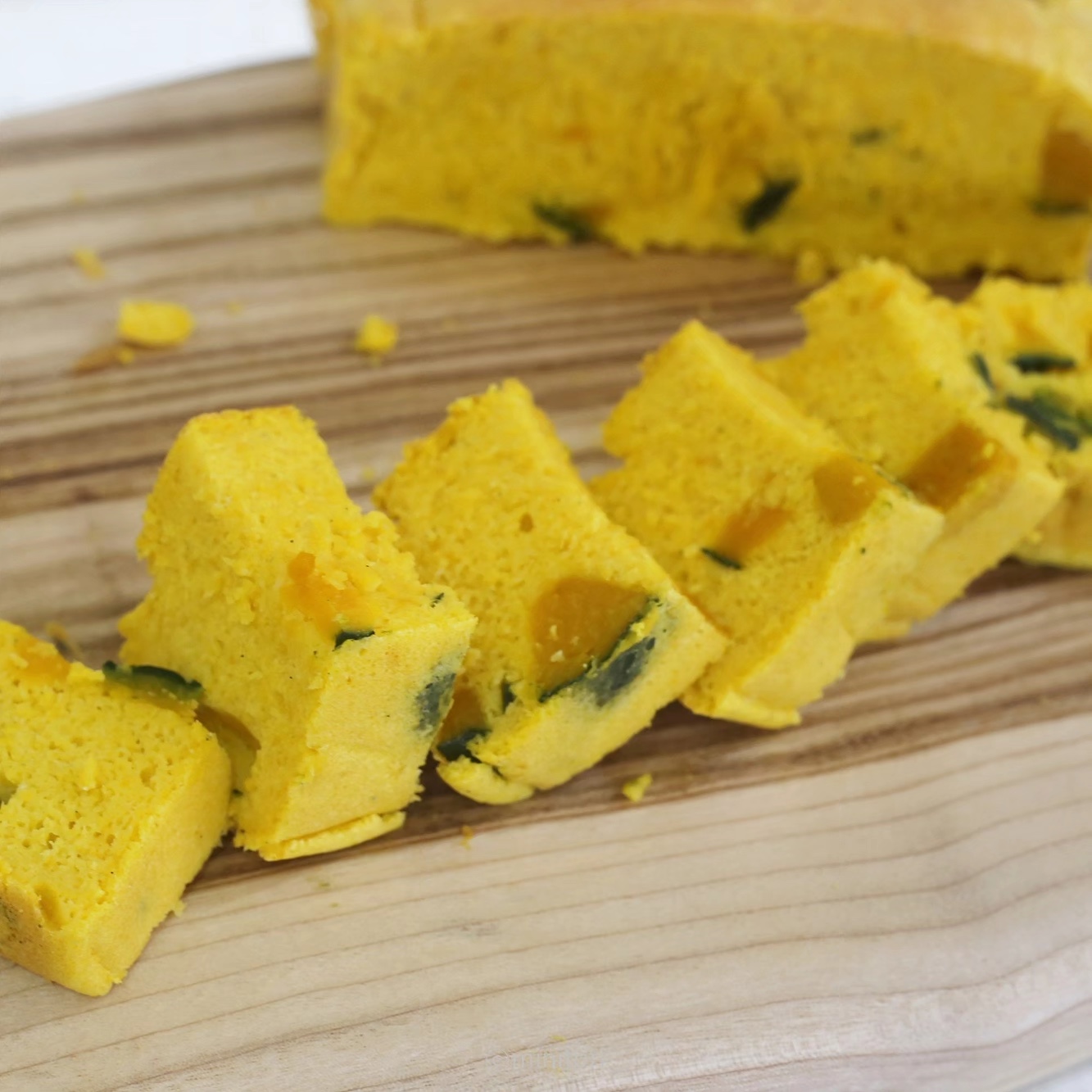 밤호박을 듬~뿍 넣어 색감도 너무 예쁘고 포슬포슬 촉촉~ 부드러운 식감이라 정말 맛있어요.