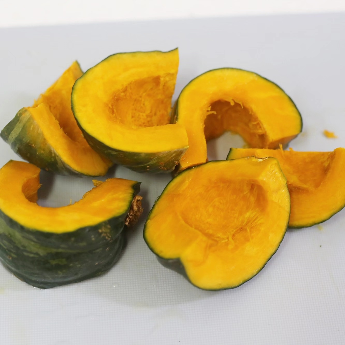 1. 밤호박은 깨끗이 세척 후 반으로 갈라 씨를 빼내고 칼로 5~6등분 한다.