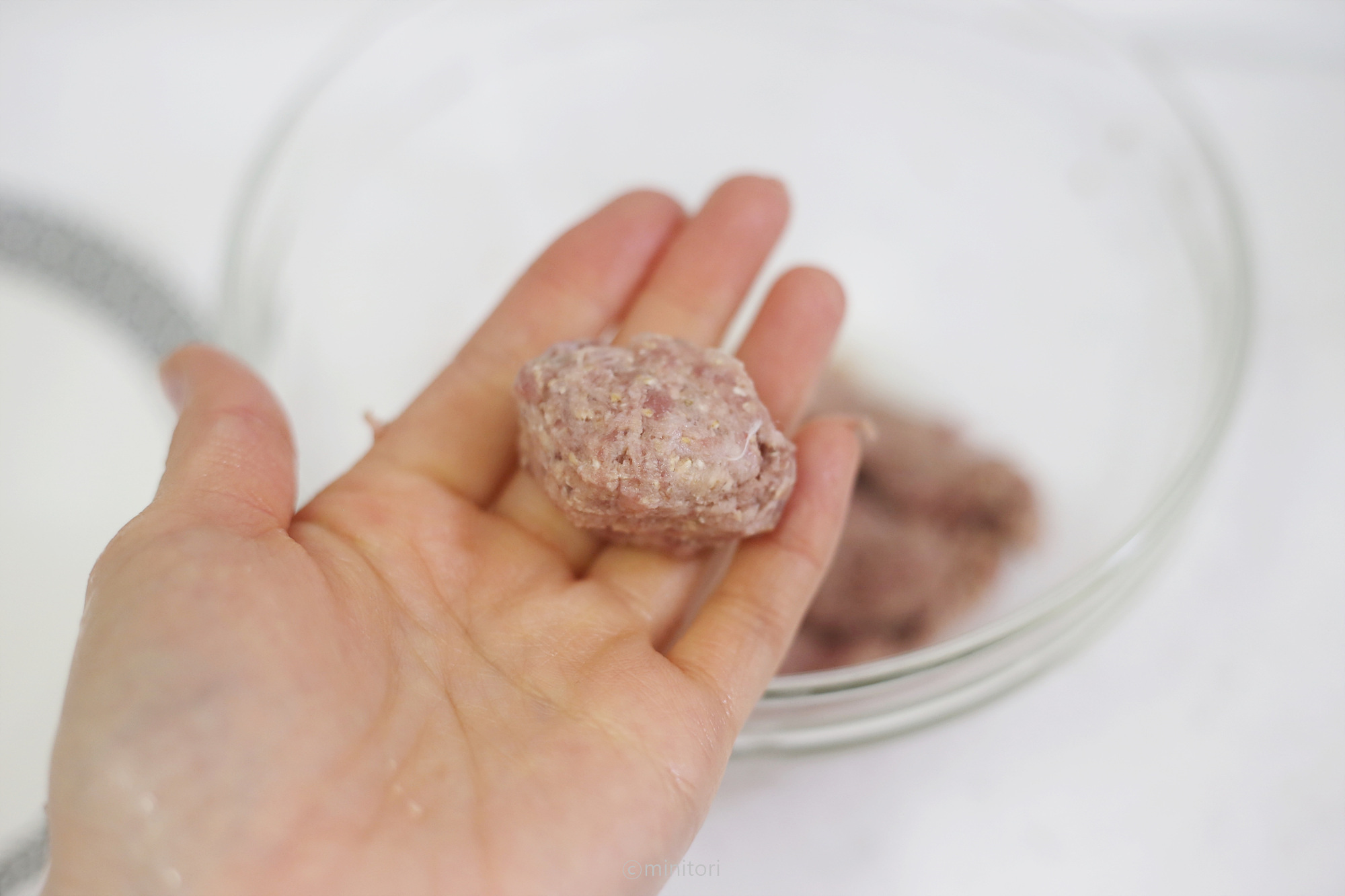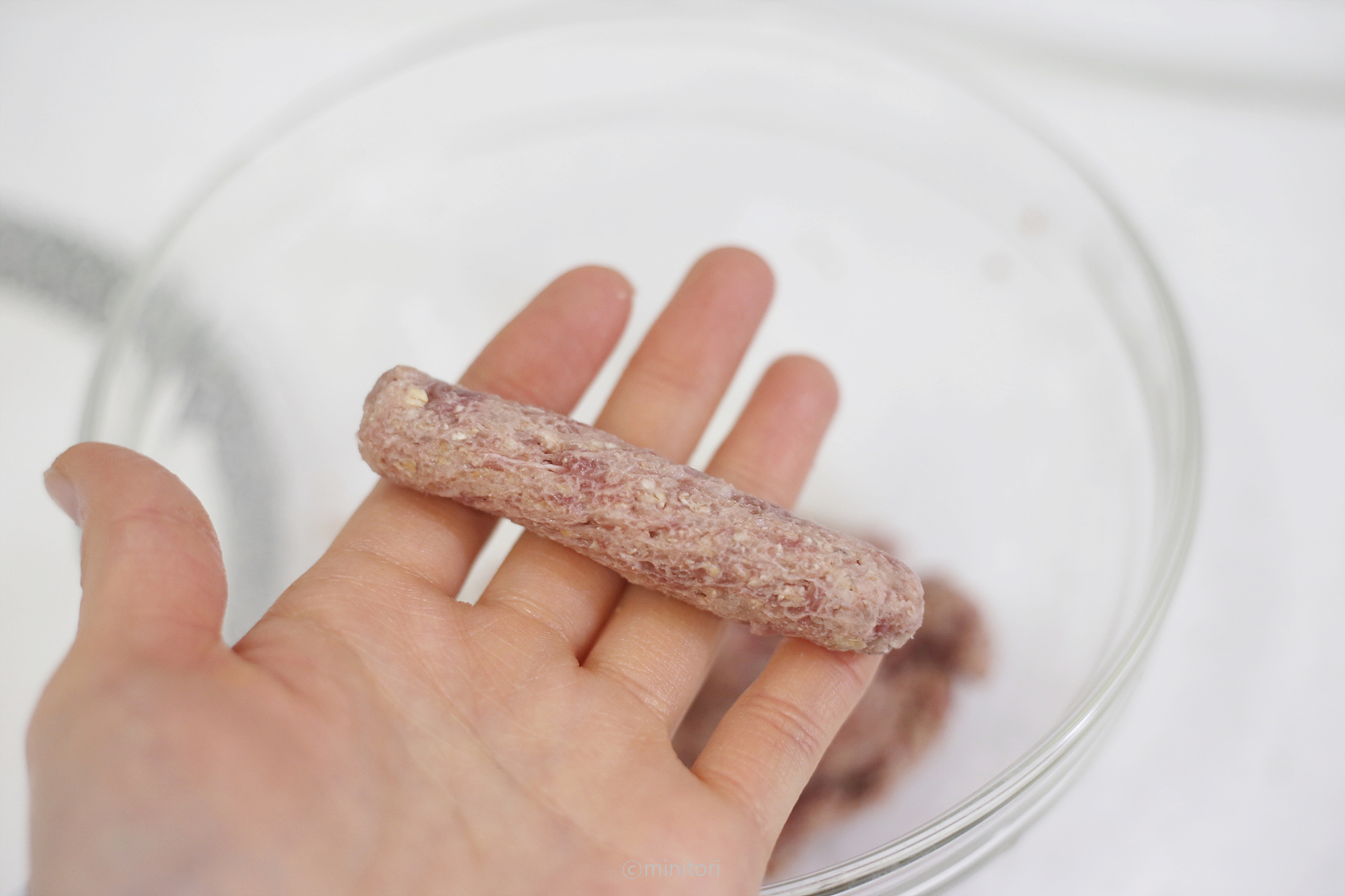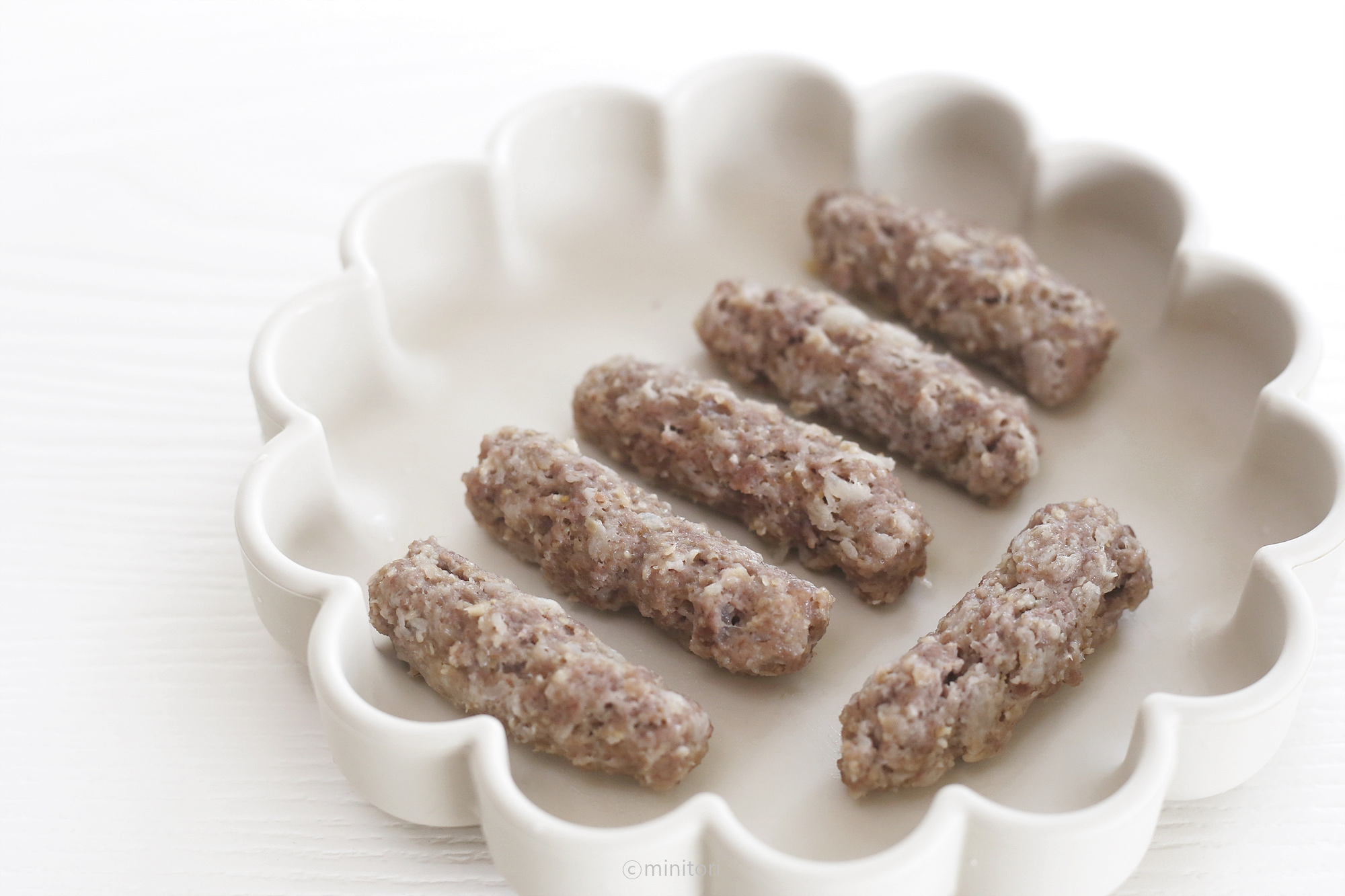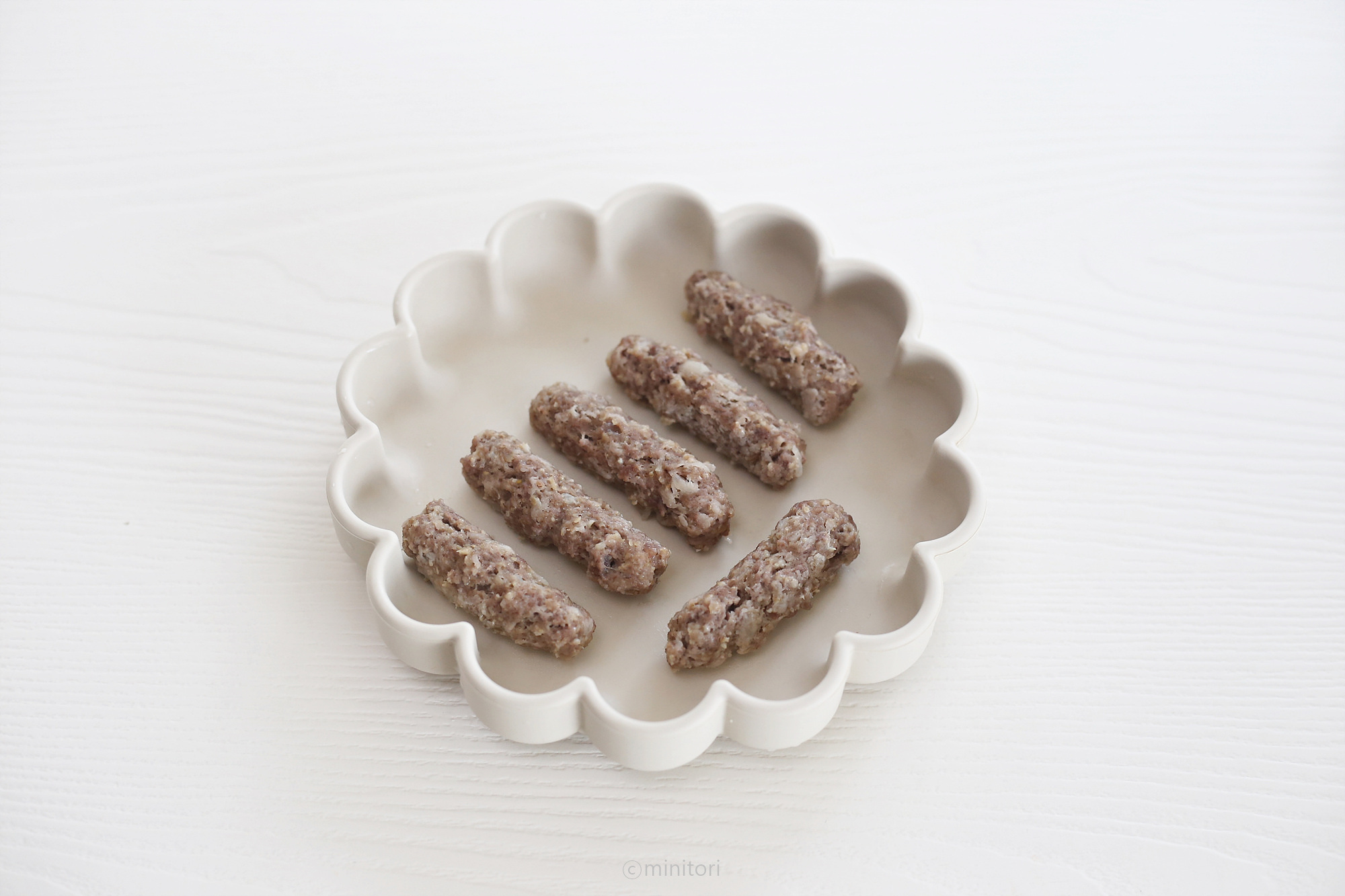 * 고기가 익으면서 수축하기 때문에 수축하는 것을 감안해서 단단하게 뭉쳐 가늘고 길게 만들어 주세요. 9~10개월 소근육이 조금 더 발달된 시기에는 동글동글 볼 모양으로 빚어주셔도 좋아요.