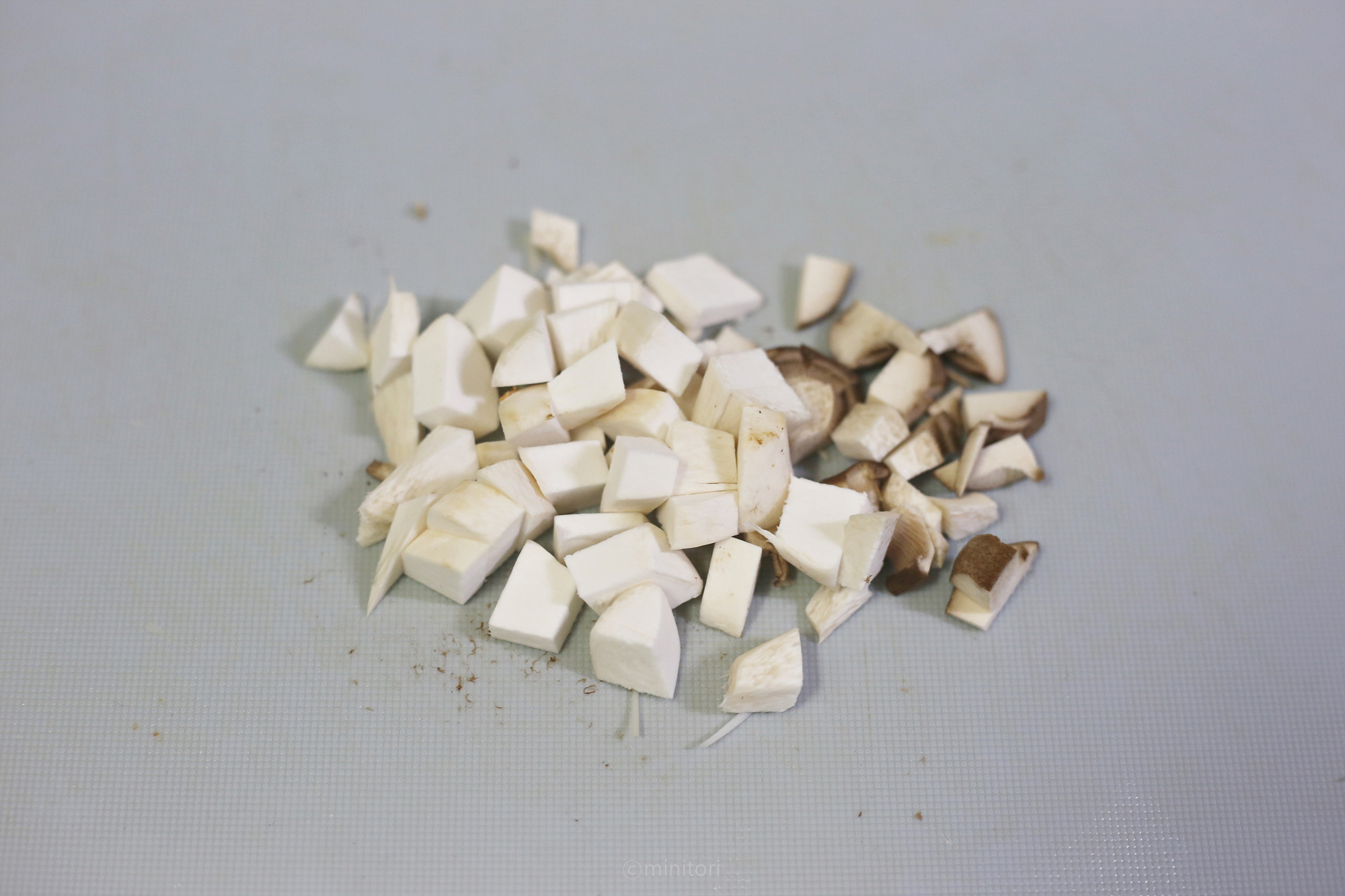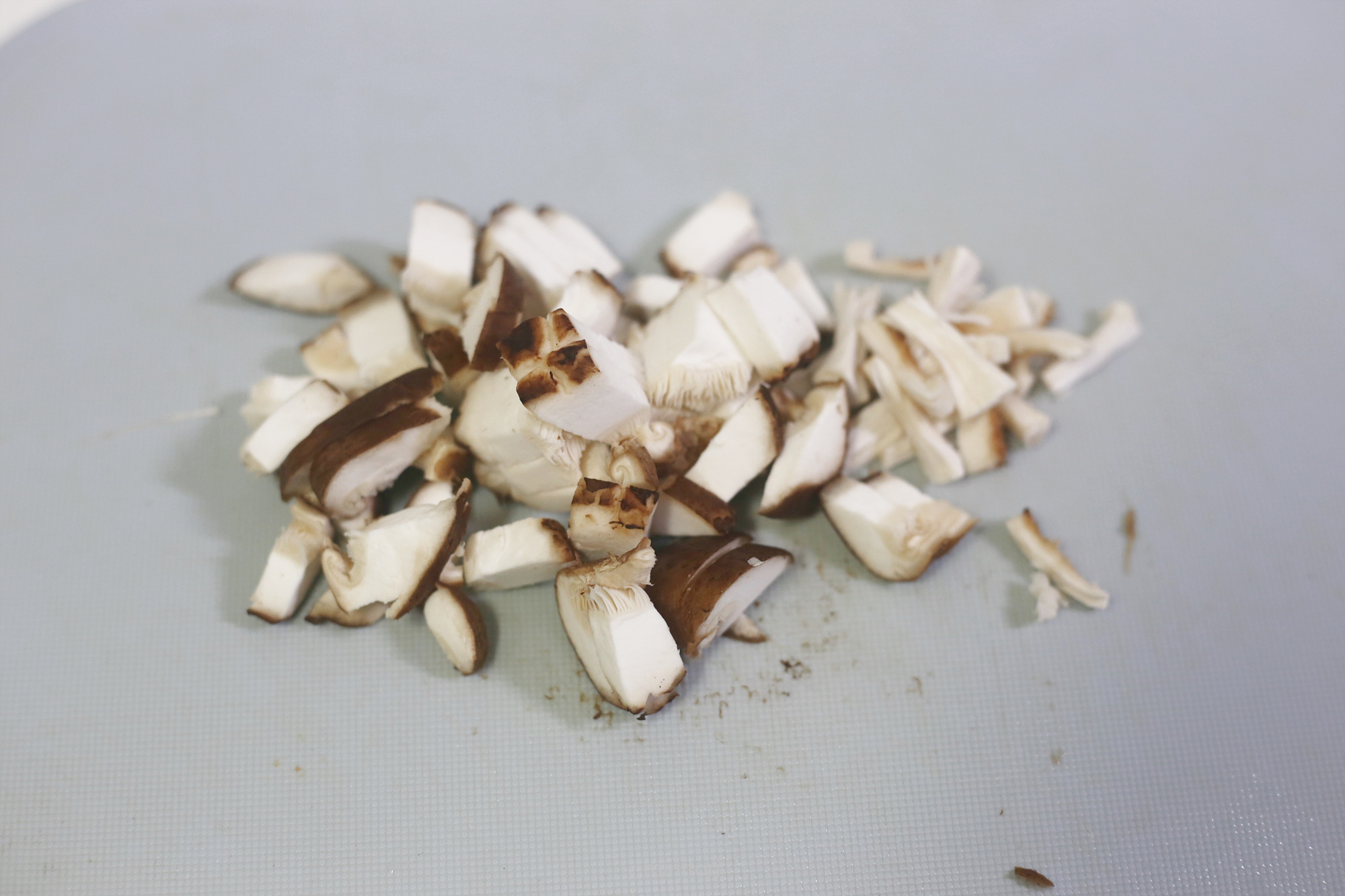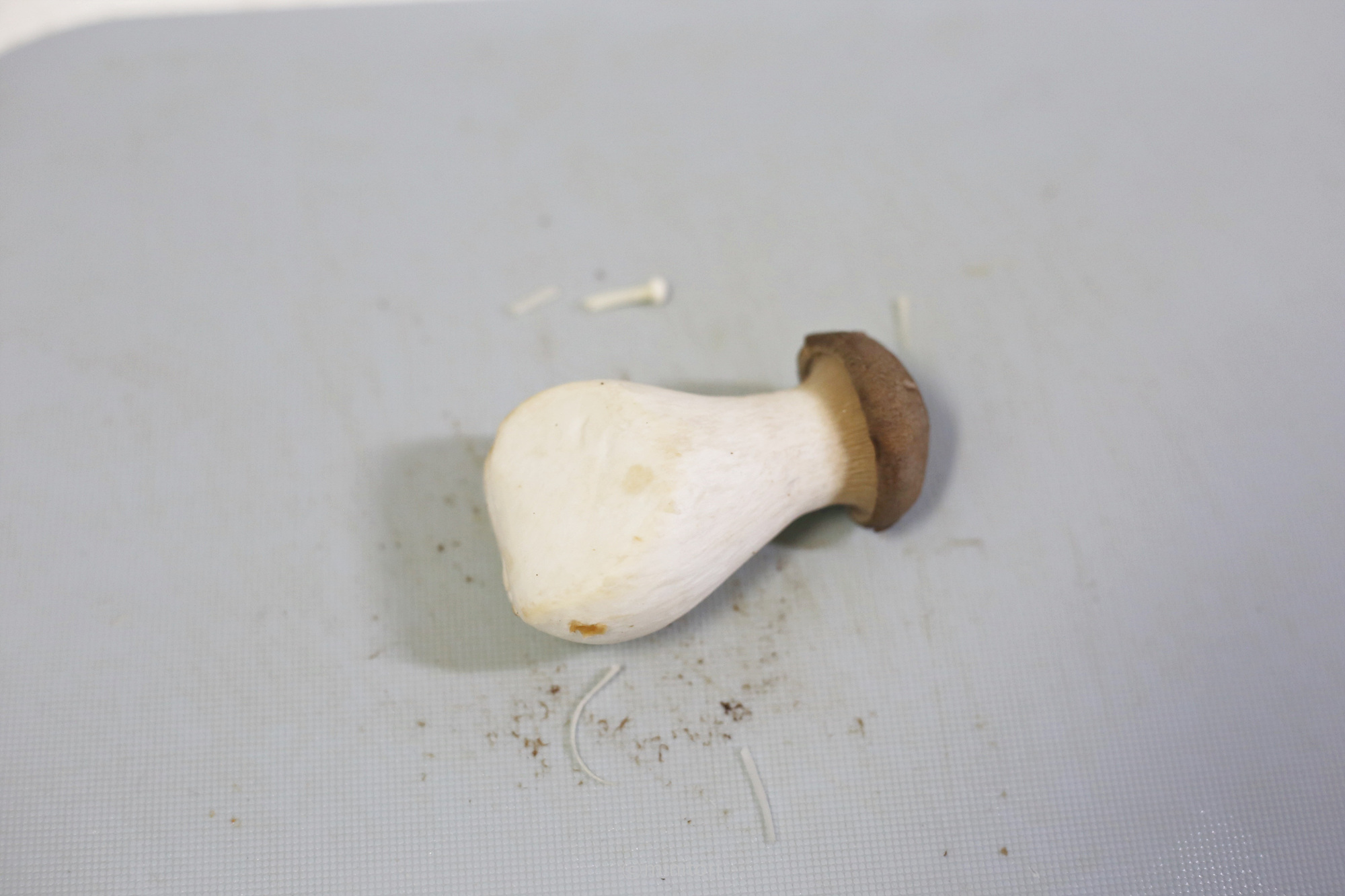 3. 새송이버섯도 아기가 먹기좋은 크기로 썬다. (버섯은 익히면 수분이 빠져 크기가 줄어들기 때문에 너무 잘게 썰지 않아도 돼요)