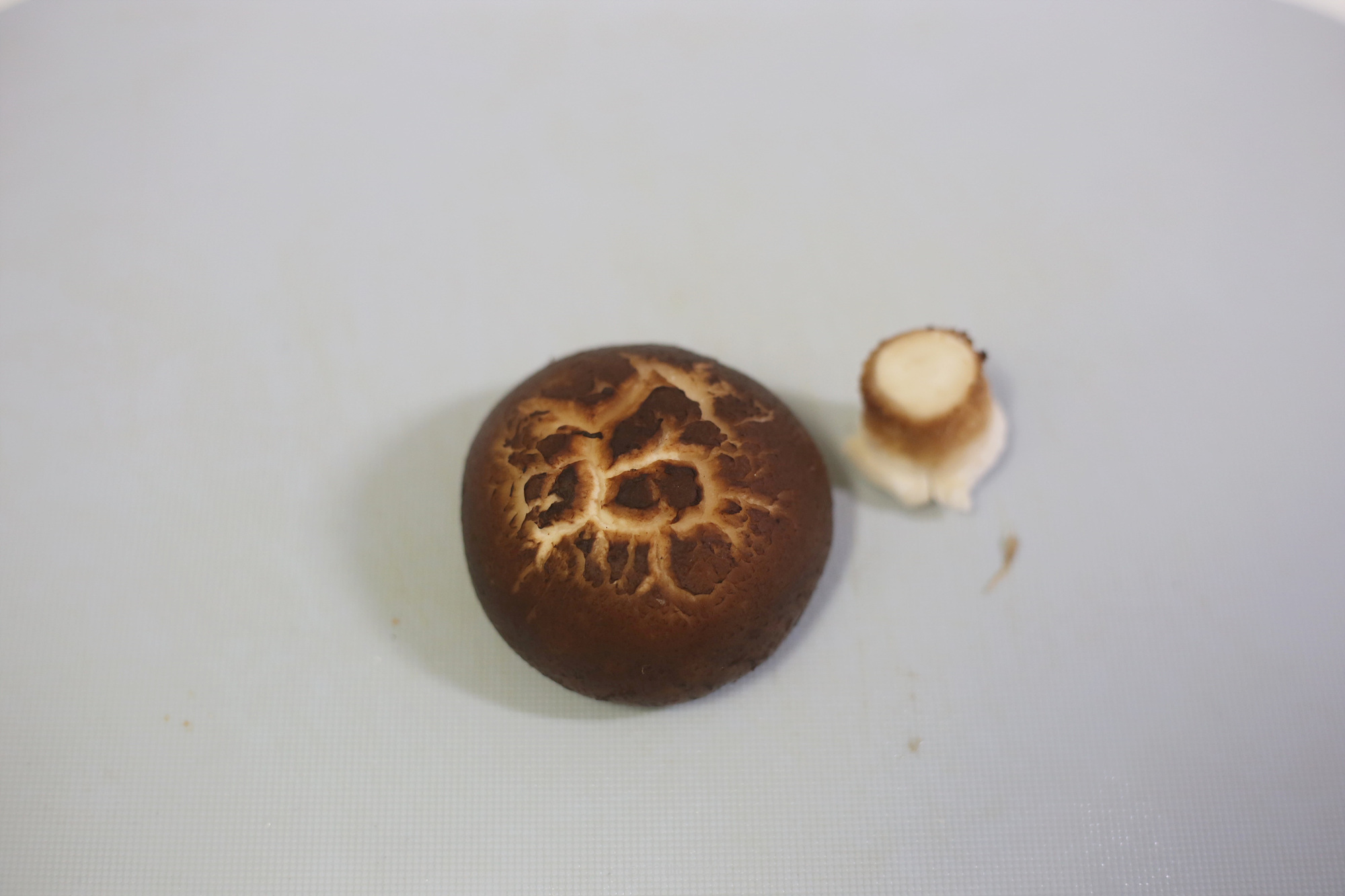 1. 표고버섯은 흐르는물에 살짝 씻어 물기를 털고 아기가 먹기좋은 크기로 썰고 기둥은 끝부분을 잘라내고 잘게 찢는다.