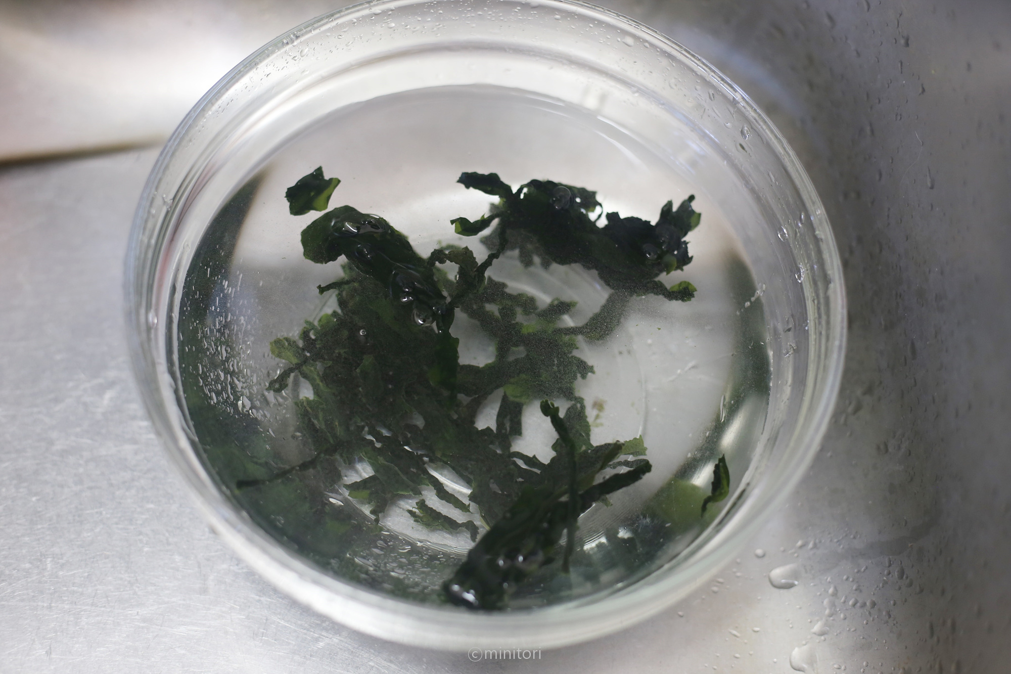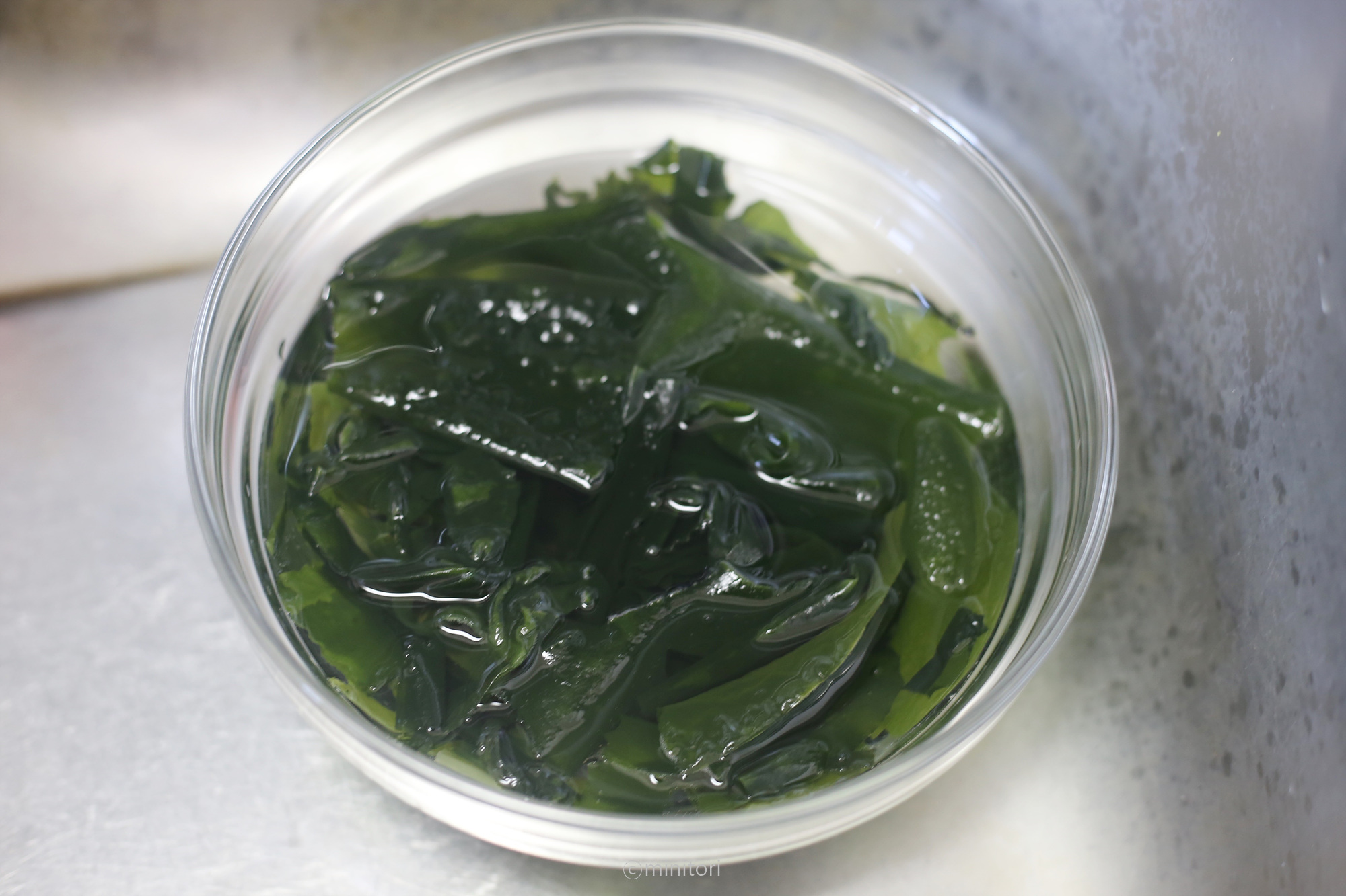 9. 미역을 물에 30분정도 담가 불려주세요.