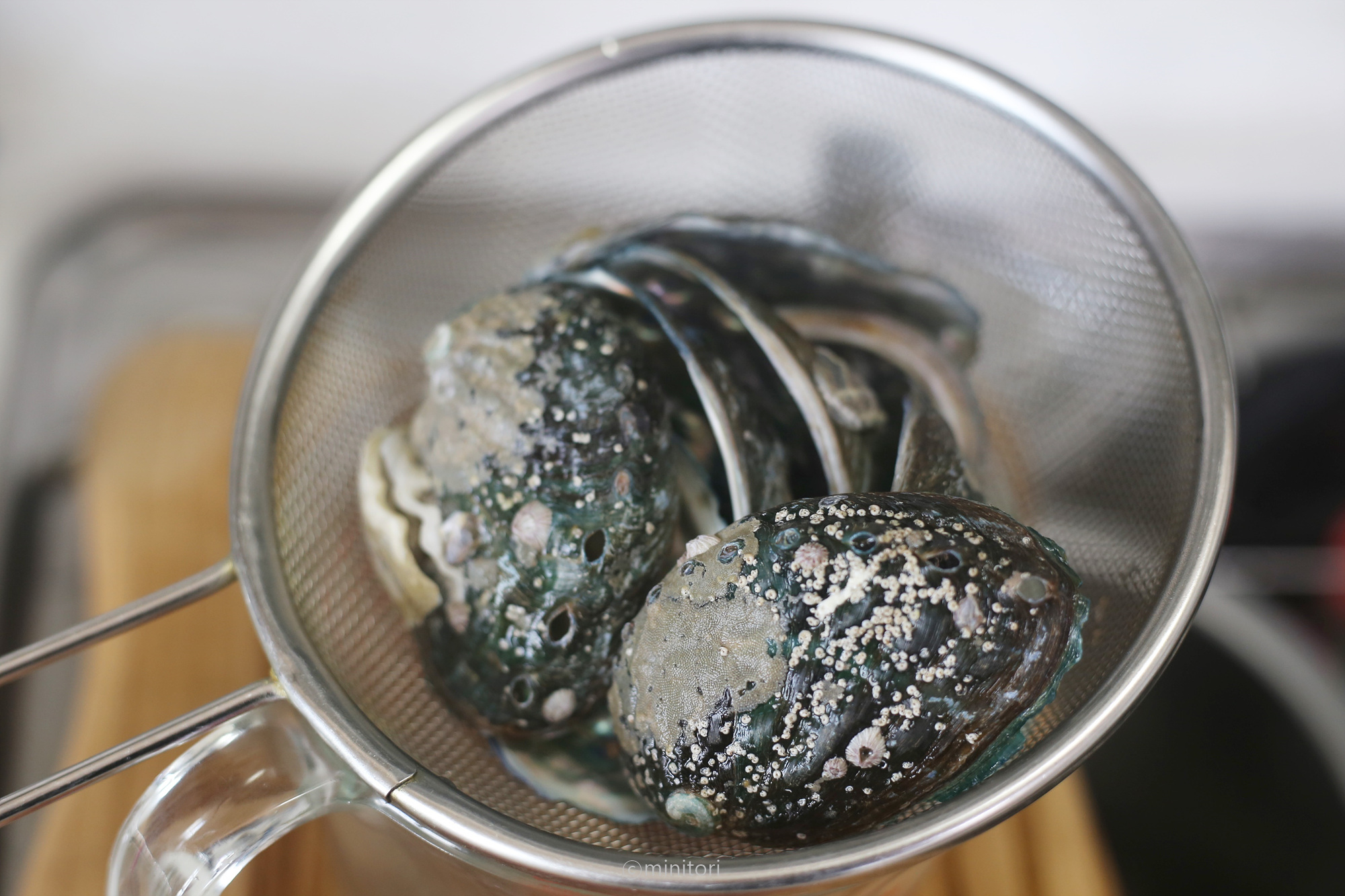 8. 플레이팅용으로 전복껍질이 필요할 경우 솔로 깨끗이 세척해서 끓는물에 1분정도 삶아 체에 밭쳐 물기를 제거해두면 필요할때 사용하기 좋아요.