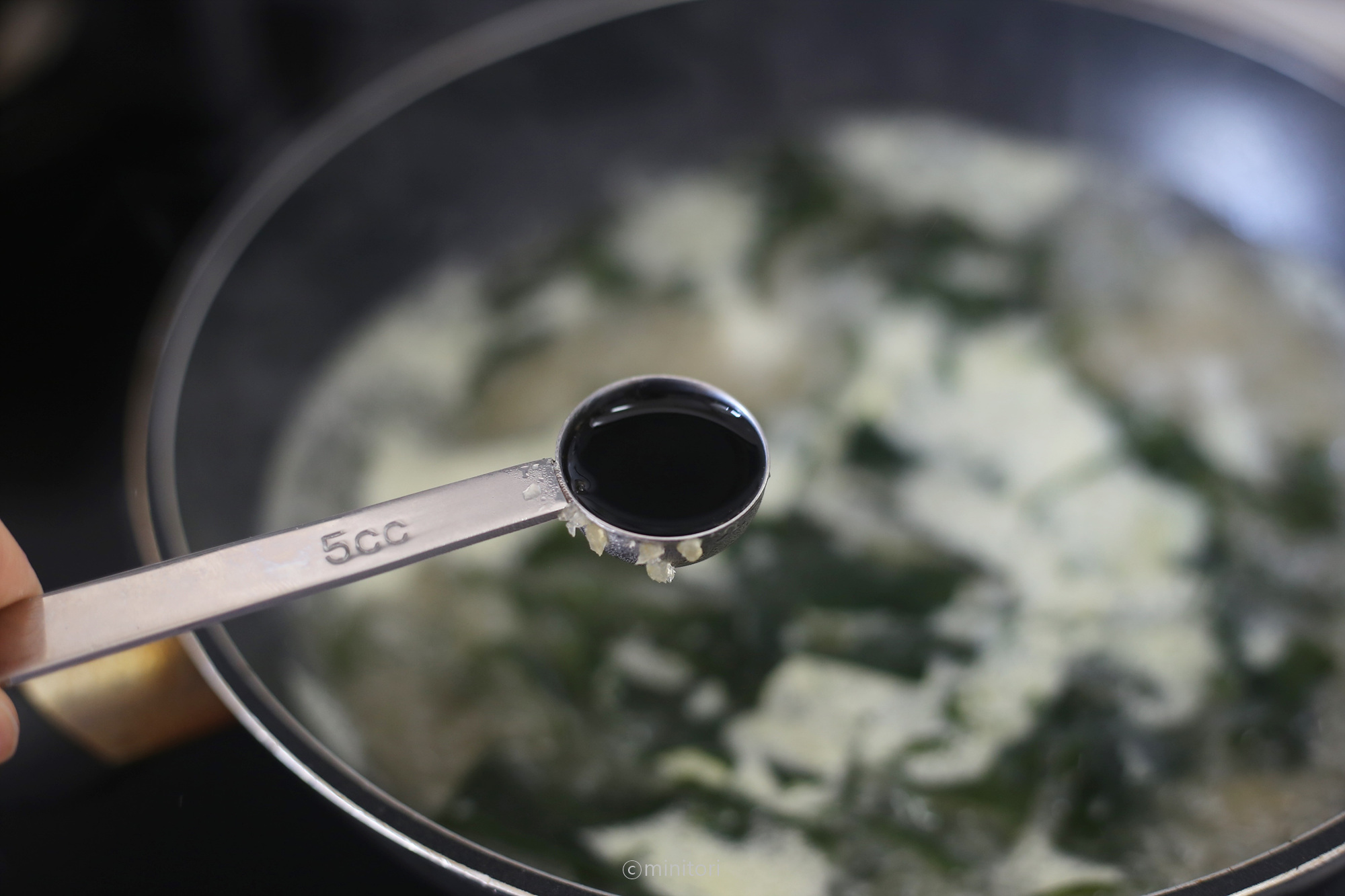 16. 아기국간장을 넣어 간을 맞춰주세요.
