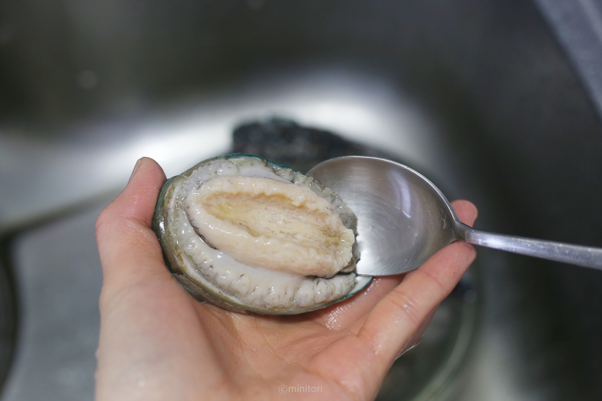 4. 껍질을 분리한 전복을 한번 더 세척합니다.