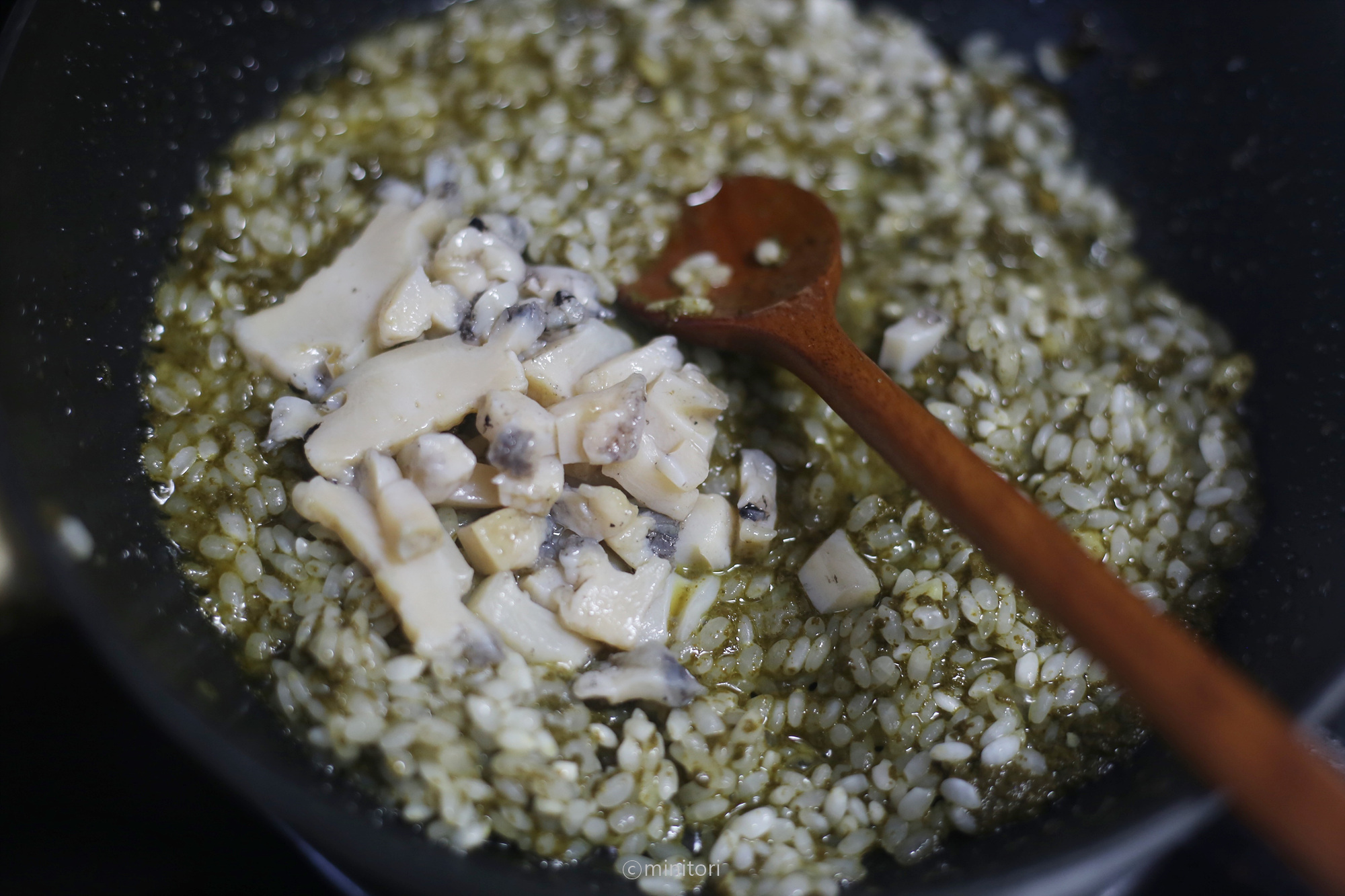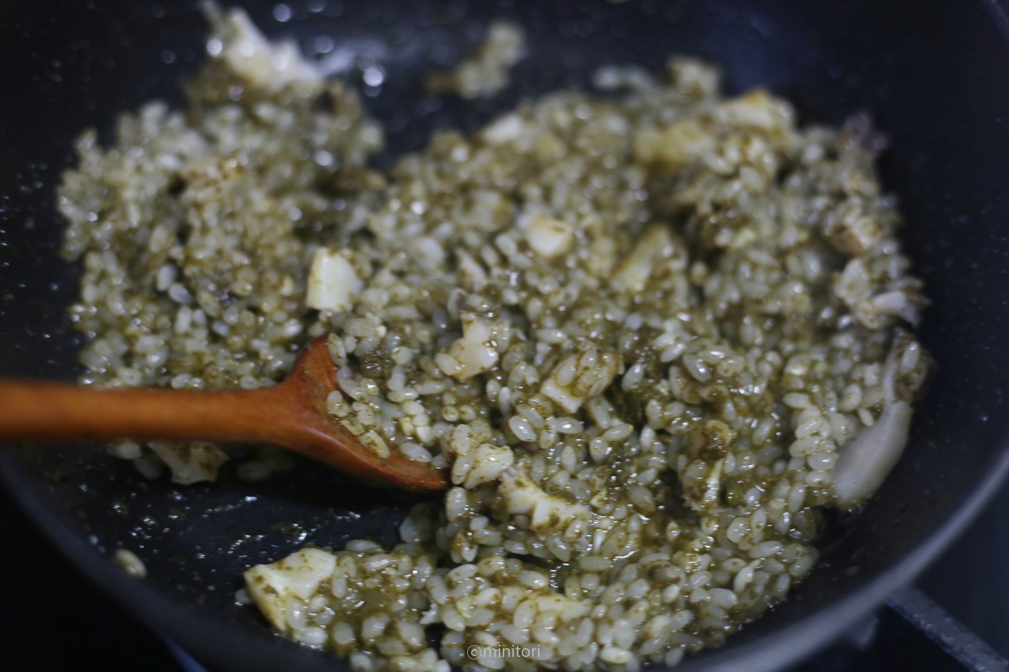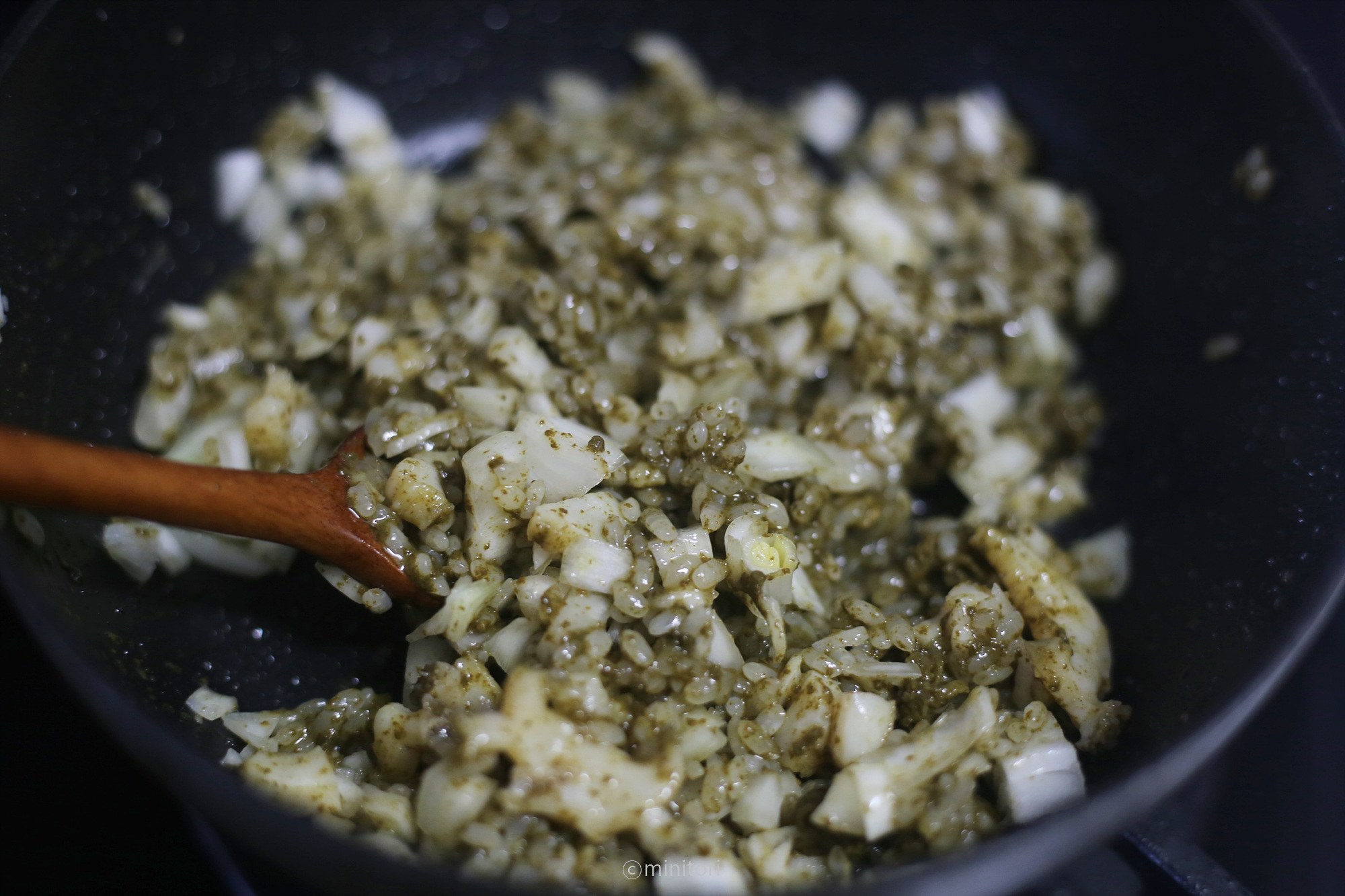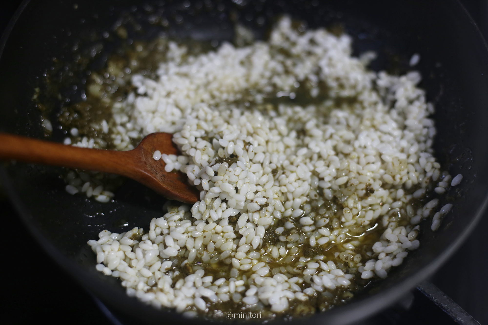 8. 불린쌀을 넣고 1~2분정도 더 볶고