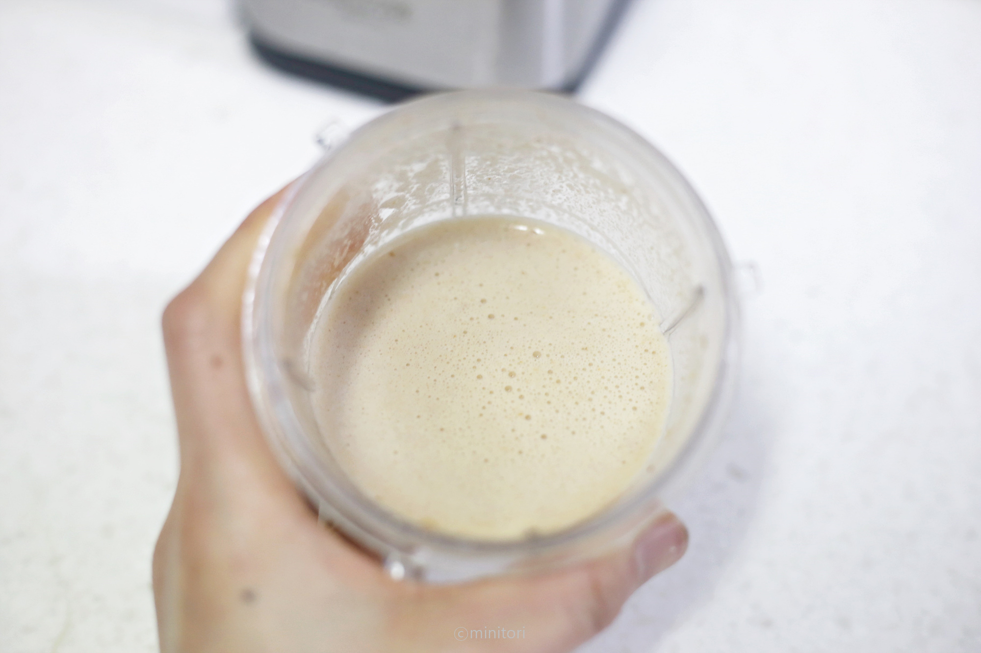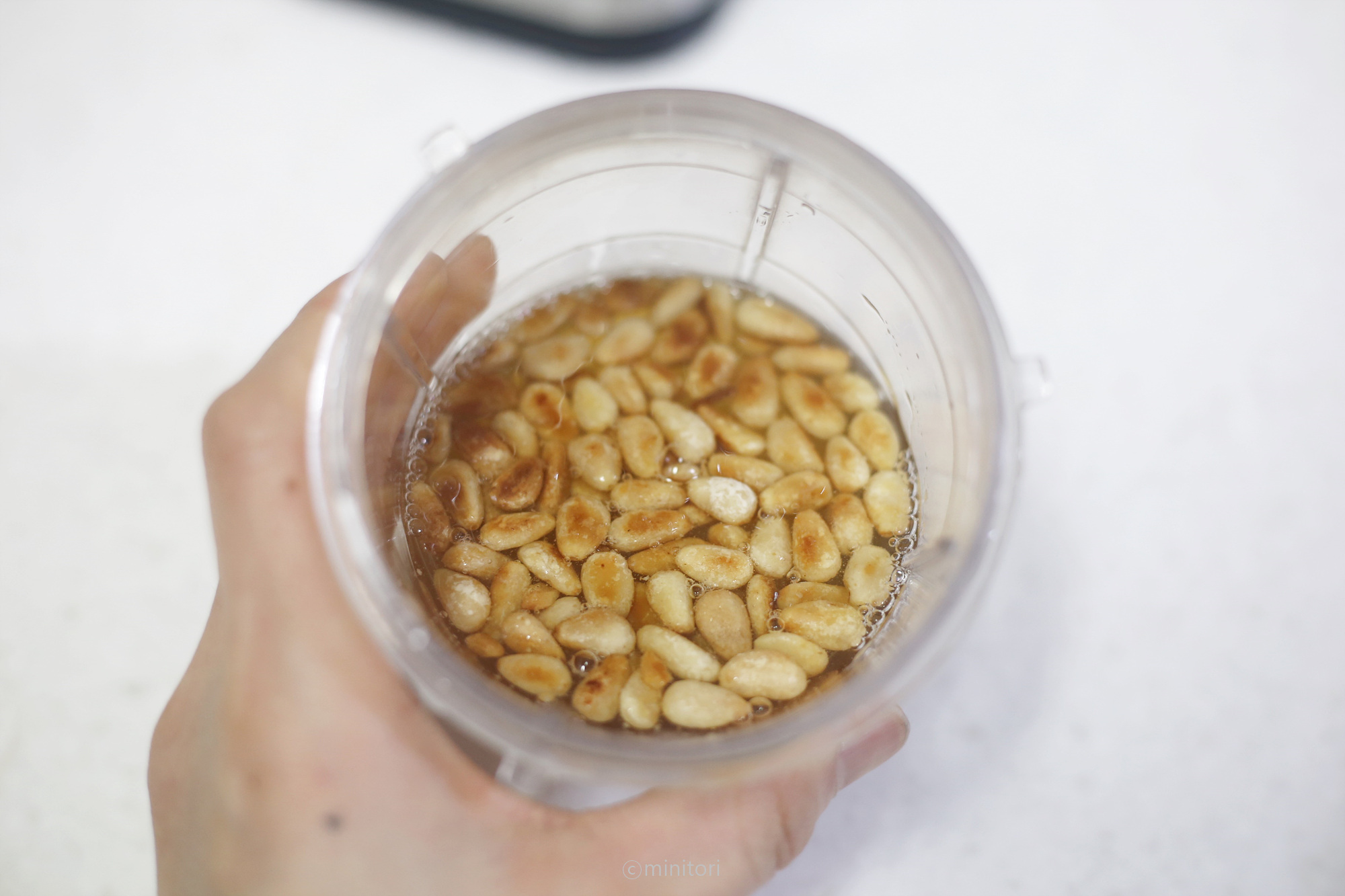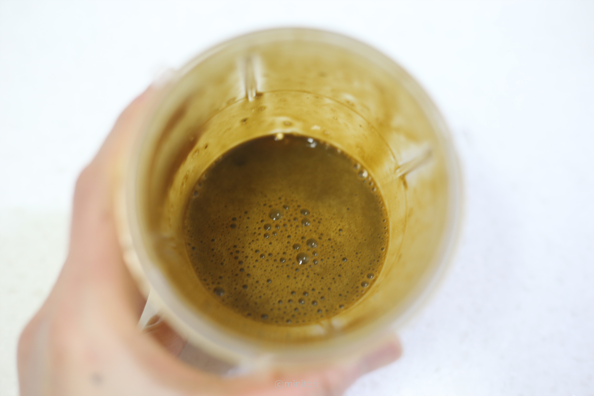 6. 믹서에 볶아서 식힌 잣과 채수를 넣고 곱게 갈아주세요.