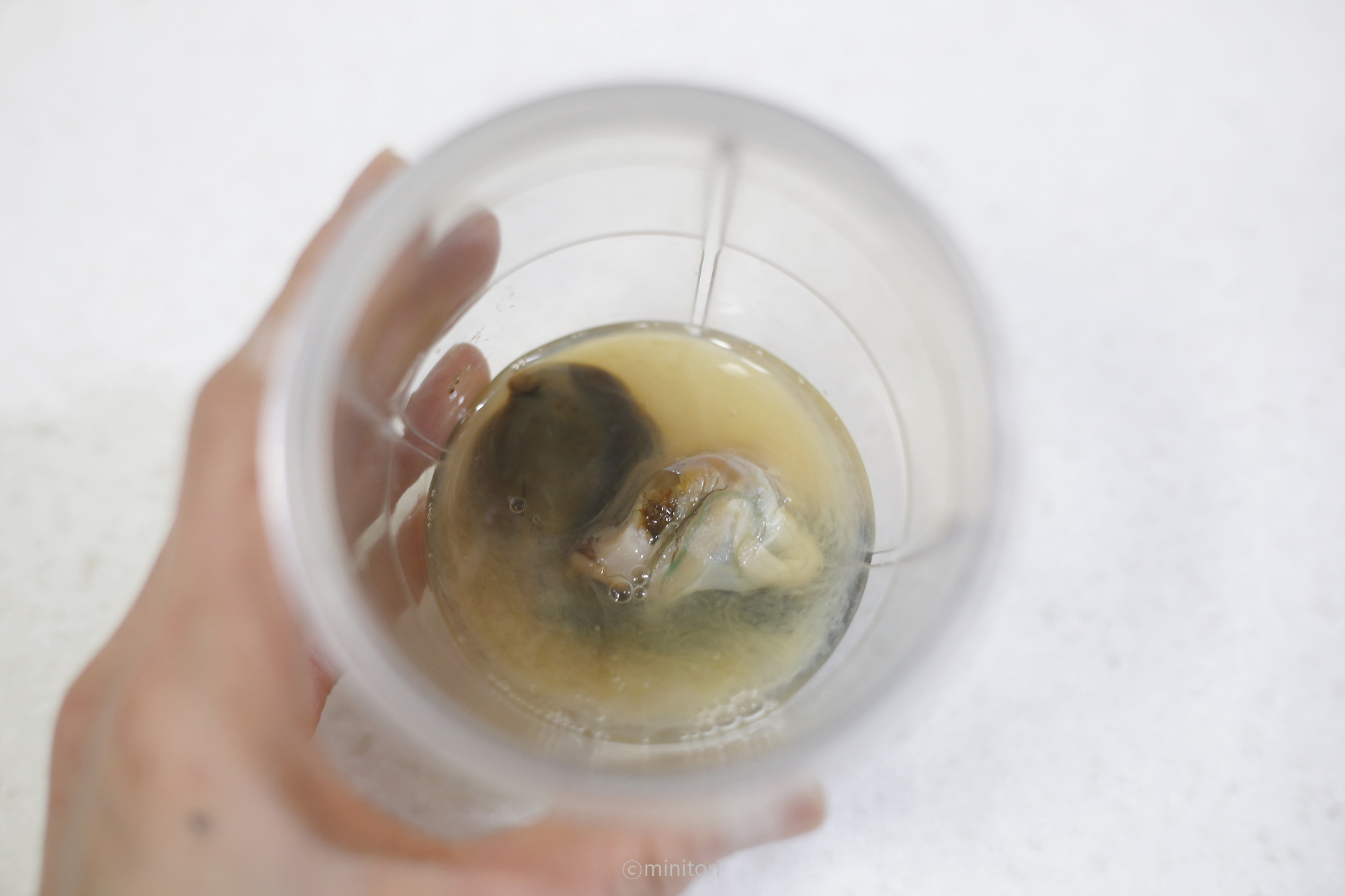 3. 전복은 손질하여 내장과 전복살을 분리하고 세척합니다. 믹서에 전복내장과 청주 한스푼을 넣고 곱게 갈아주세요.