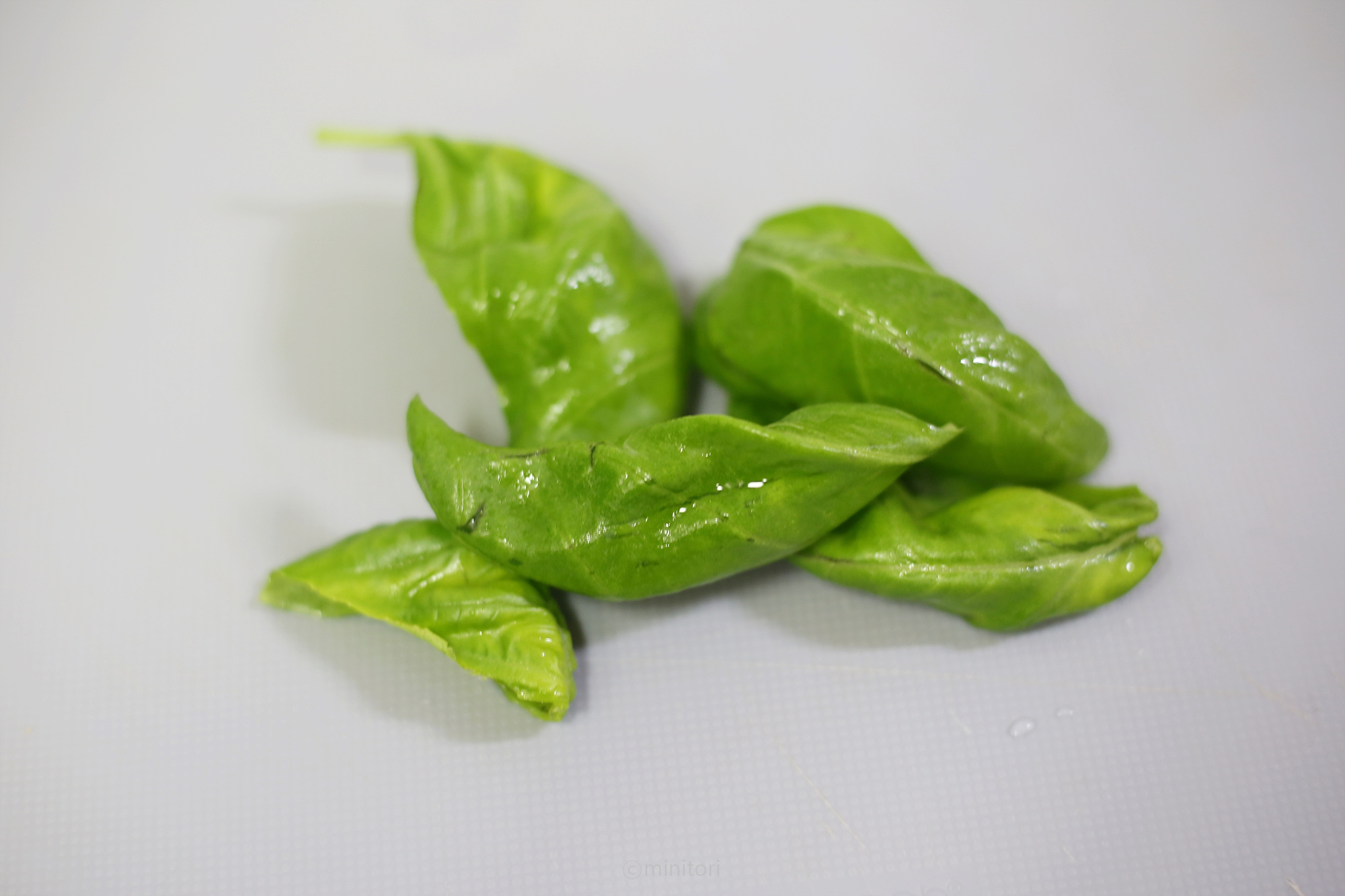 6. 바질잎은 깨끗이 씻어 물기를 털고 잘게 다진다.