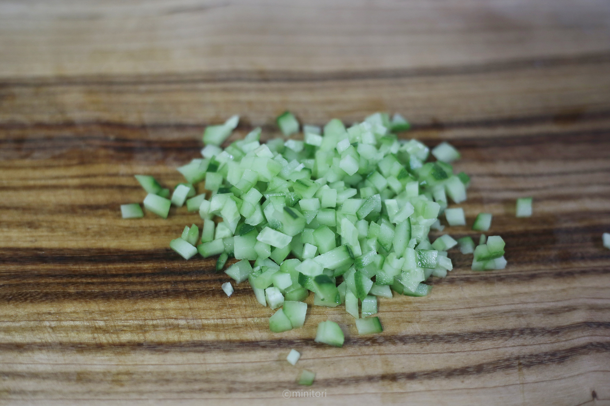 3. 저염명란젓도 잘게 다진다. (껍질이 씹히는게 싫다면 반으로 갈라 칼등으로 껍질부분을 제거한 뒤 사용해도 좋아요)