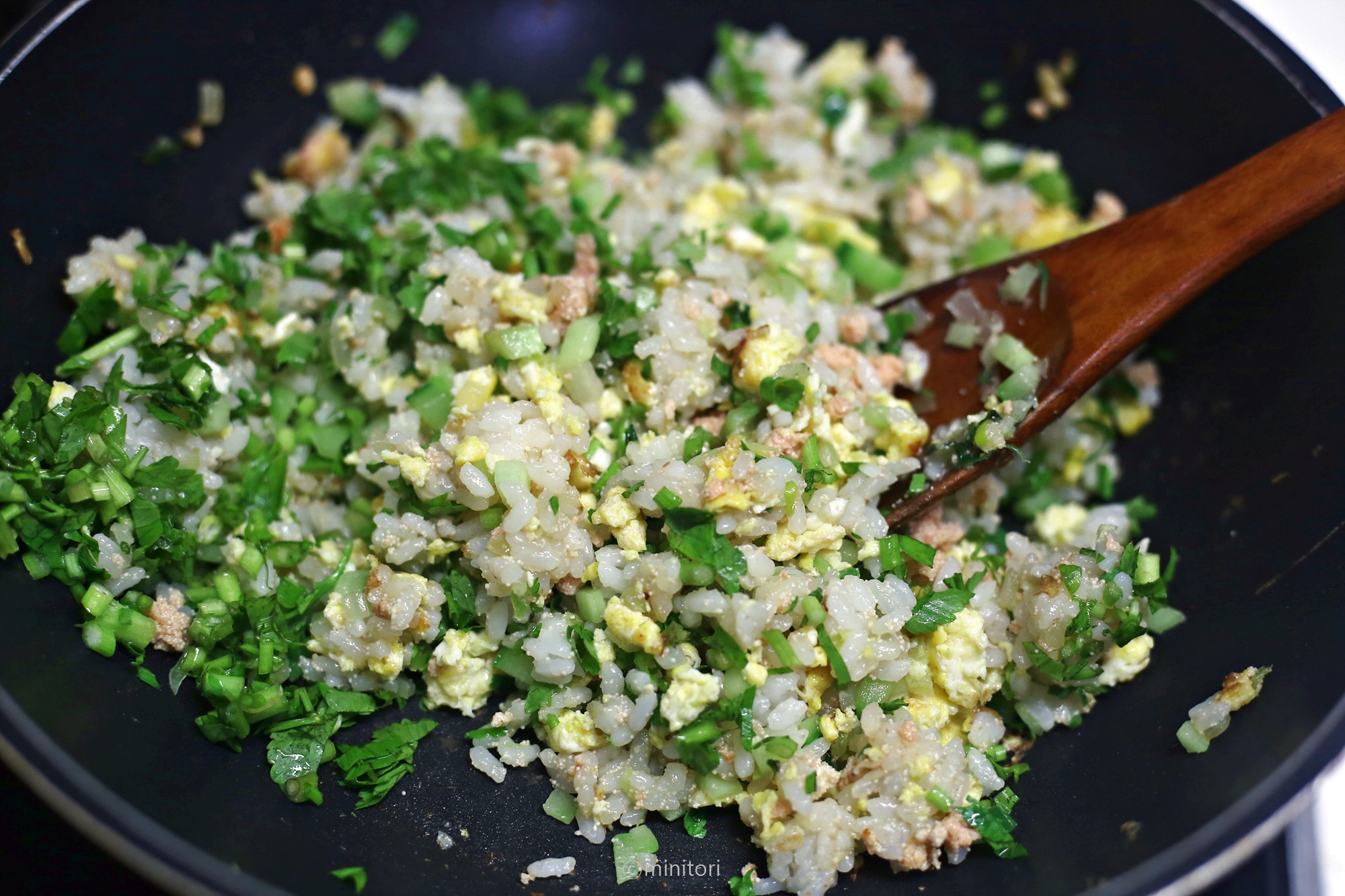 6. 달걀을 다 익힌 후 볶아놓았던 재료와 섞는다.