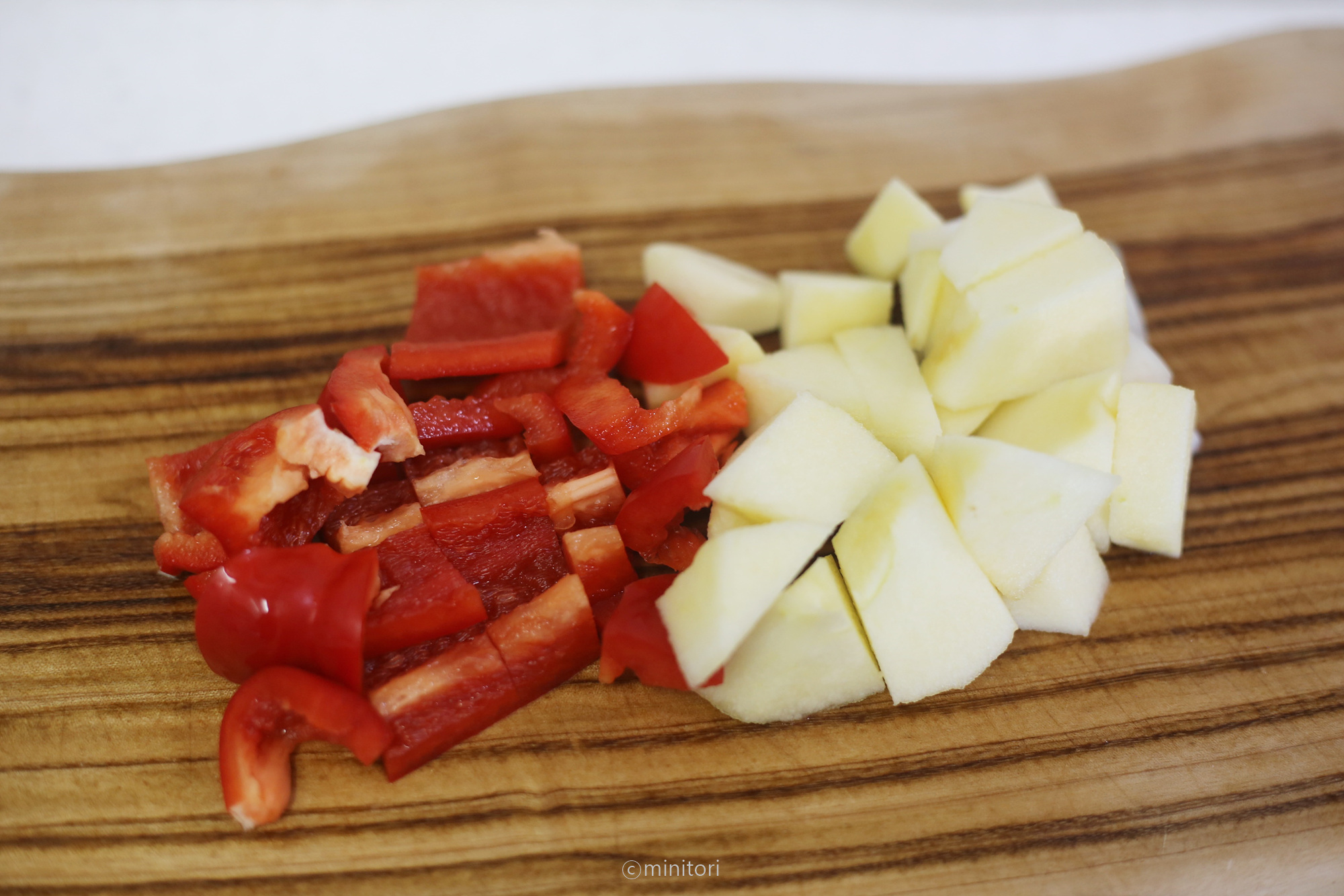 6. 파프리카, 양파, 사과는 믹서에 갈기 좋은 크기로 잘게 썬다.