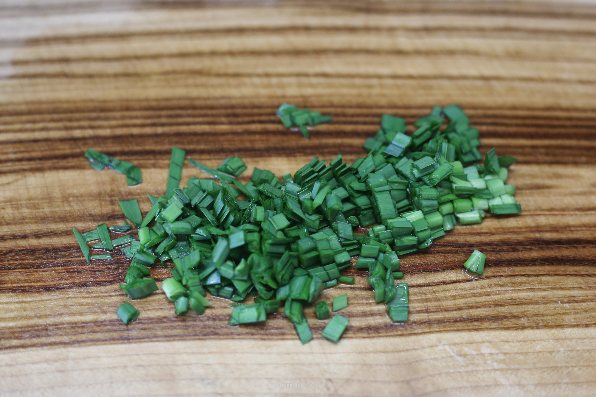 8. 부추는 잘게 쫑쫑 썰어둔다.
