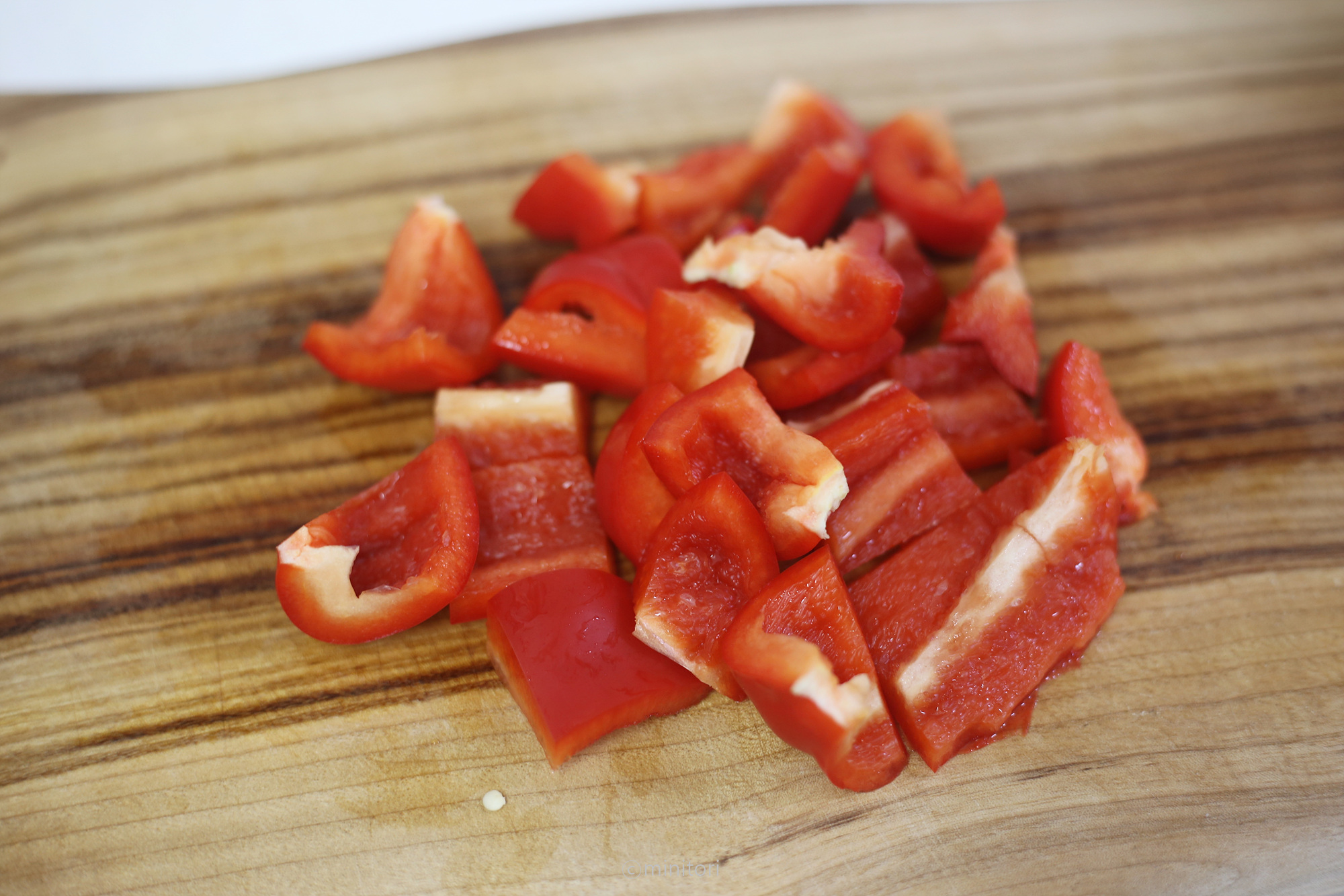 3. 파프리카는 깨끗이 세척 후 꼭지와 씨를 제거하고 믹서에 갈기 적당한 크기로 자른다.