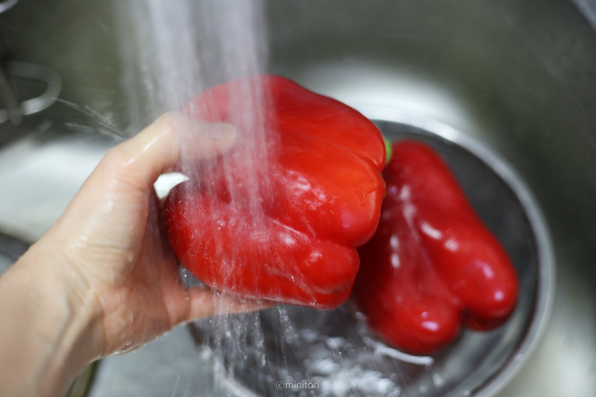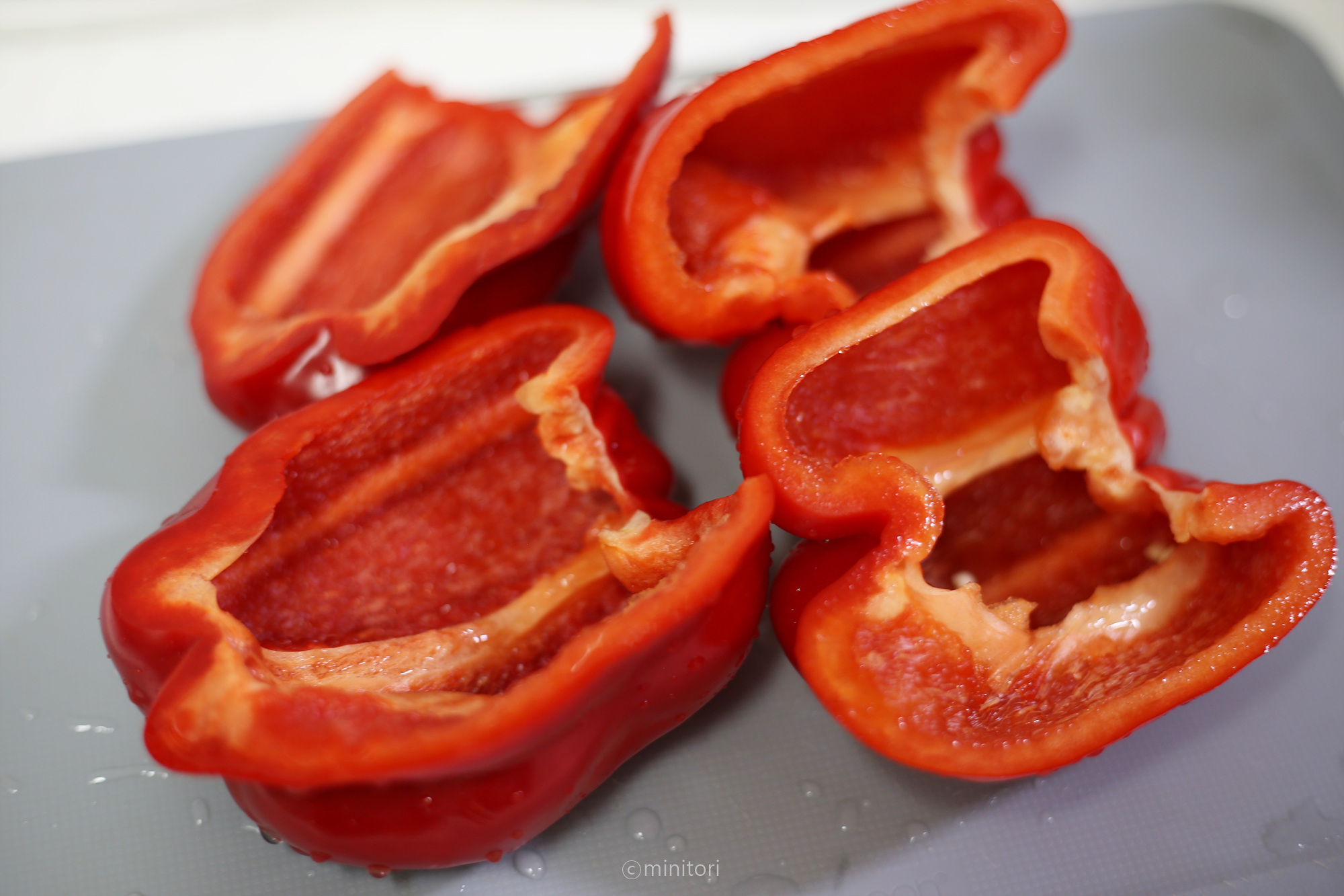 1. 파프리카는 세척후 반으로 자르고 꼭지와 씨를 제거한다.