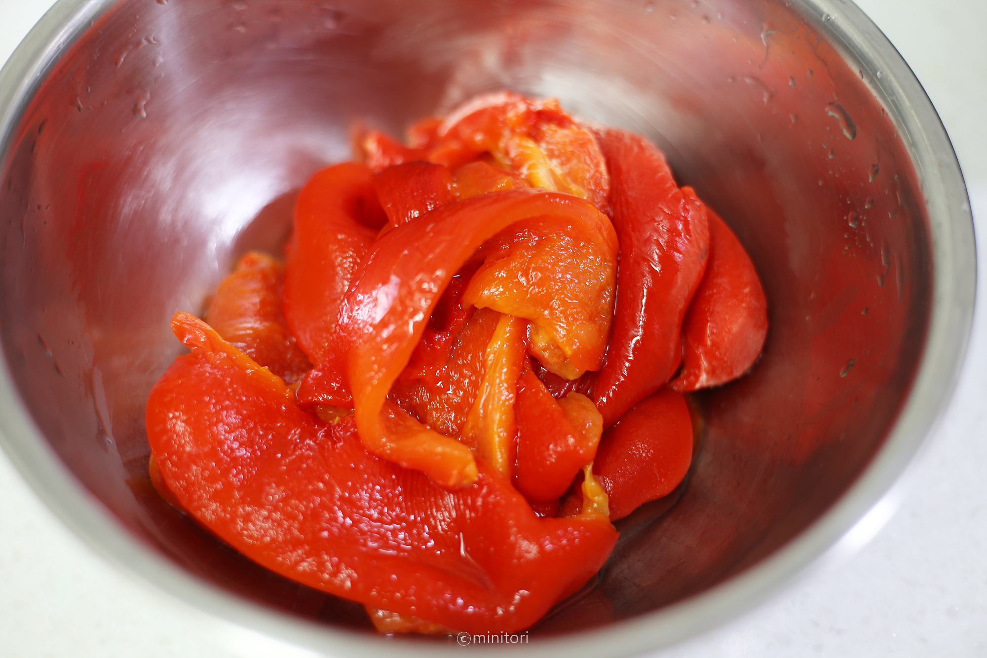 * 빨간파프리카 2개 (구워서 껍질 제거한 무게 260g)