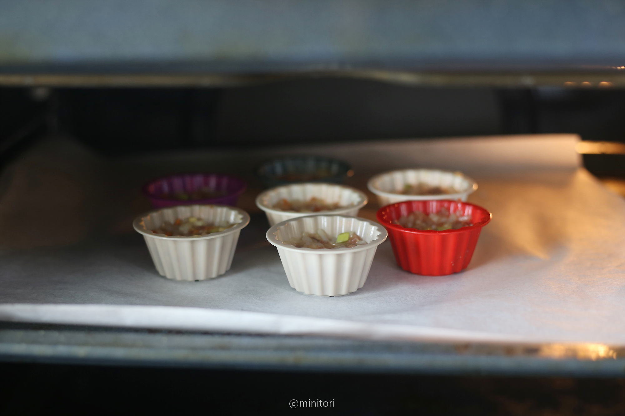 4. 175도 예열된 오븐에서 15분 굽는다. (찜기 사용시 10~15분정도, 에어프라이어 160도 온도에서 10분정도)
