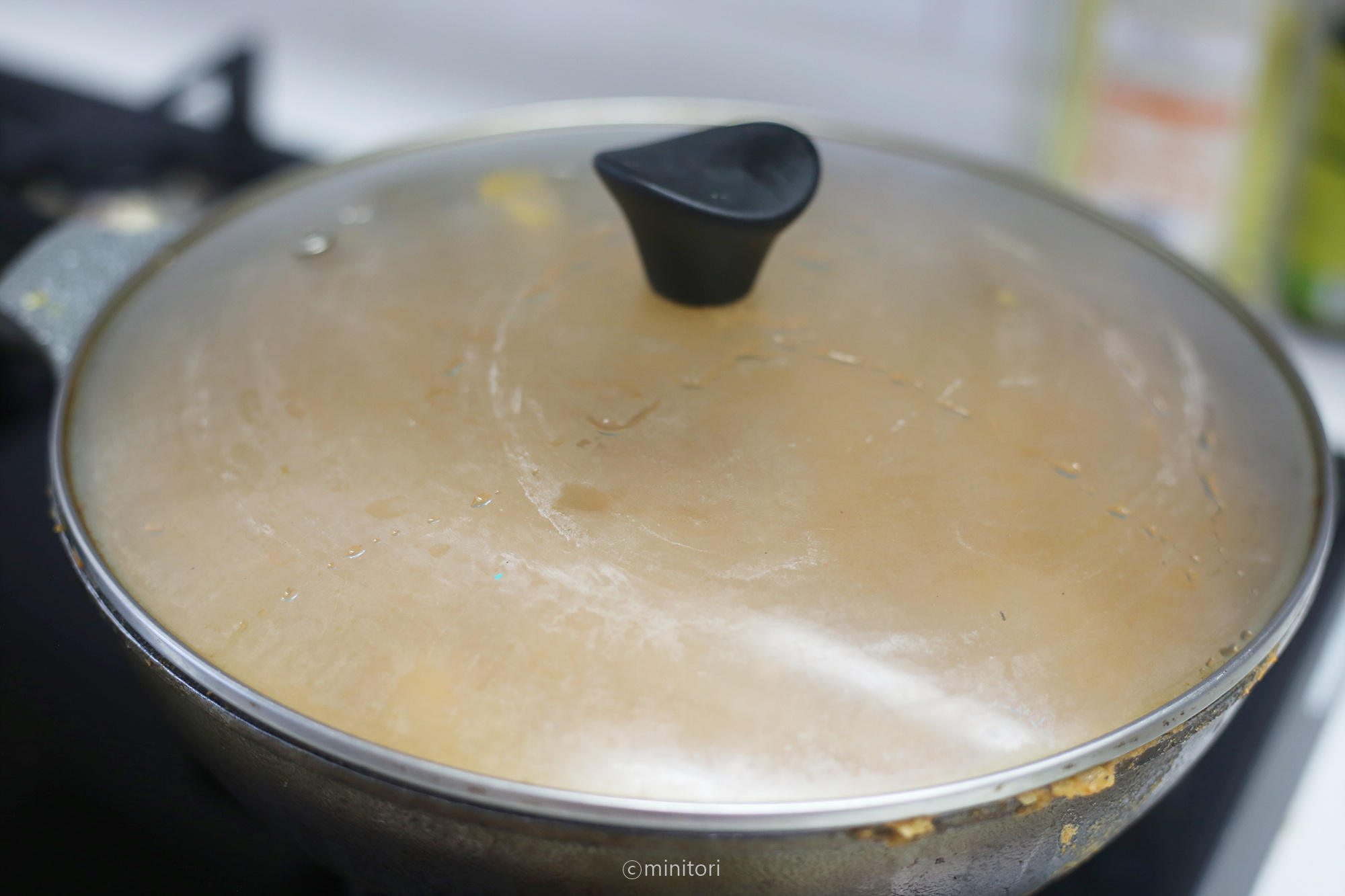 10. 9에 월계수잎, 닭고기육수큐브를 넣고 넛맥, 바질가루, 파슬리가루, 오레가노, 파프리카가루를 넣고 뚜껑을 덮고 중약불에서 1시간정도 뭉근히 끓인다.